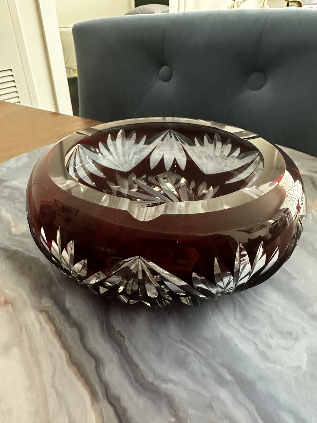 Selling a vintage crystal ashtray. It has a beautiful design and is in great condition! It would be a great addition to any collection or as a decorative piece