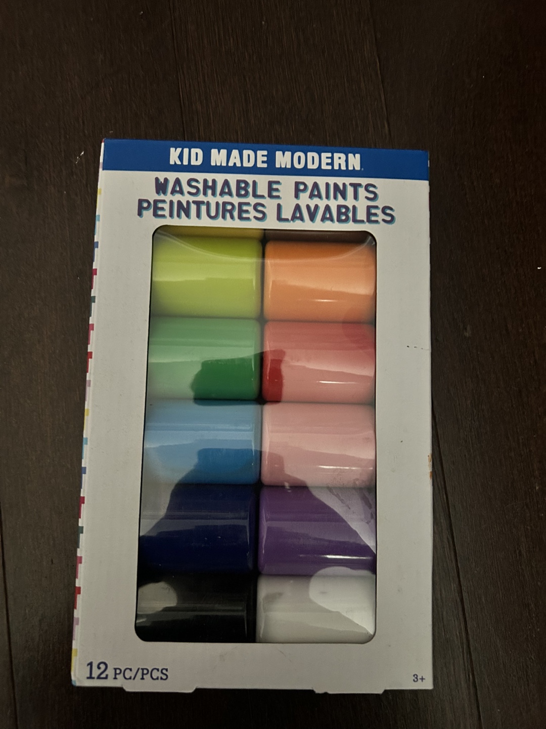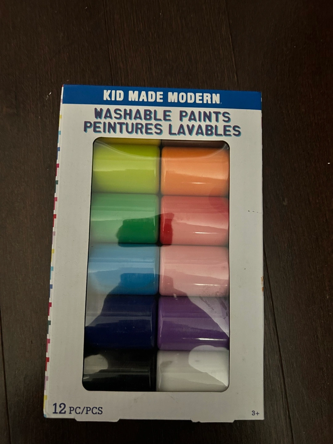 I'm selling a set of Kid Made Modern Washable Paints! Never opened or used! It includes 12 different colours, perfect for worry-free painting. The box is included, and the paints are suitable for ages 3+