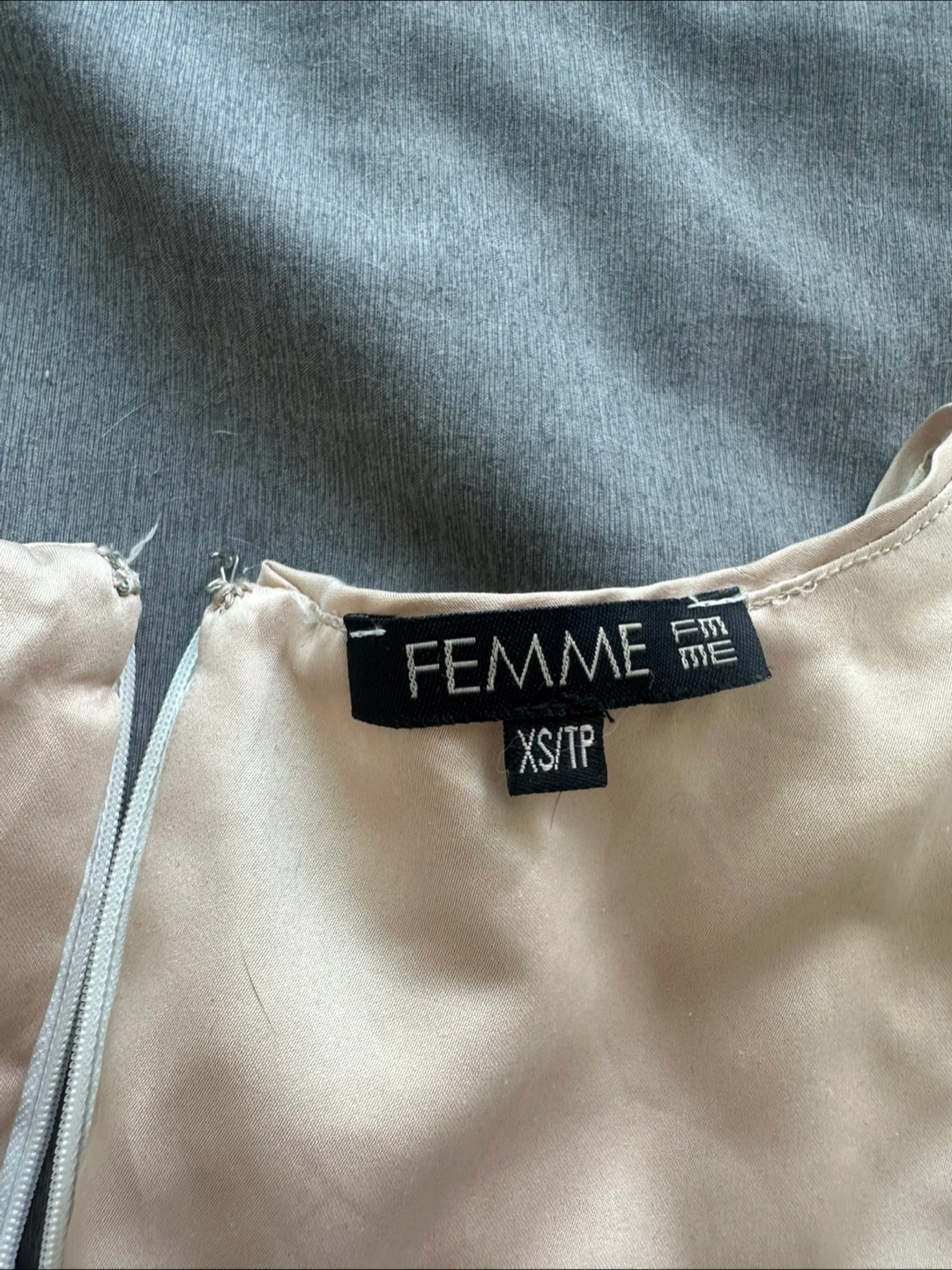 This is a FEMME lace top in size XS. The shell is made of 30% cotton and 70% nylon, and the lining is 100% polyester. It’s in great condition and ready for a new home. Great for the office in the summer.