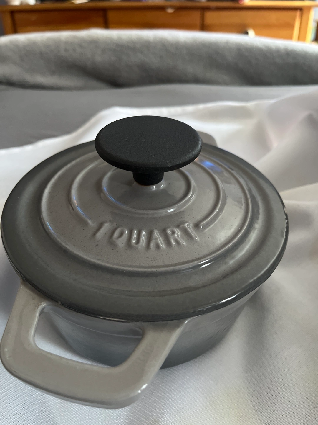 I'm selling a Smith & Clark Ironworks Dutch Oven! It's in great condition and ready for your next culinary adventure. It's a 1 quart size and a neutral gray color. Retails for $66.99!