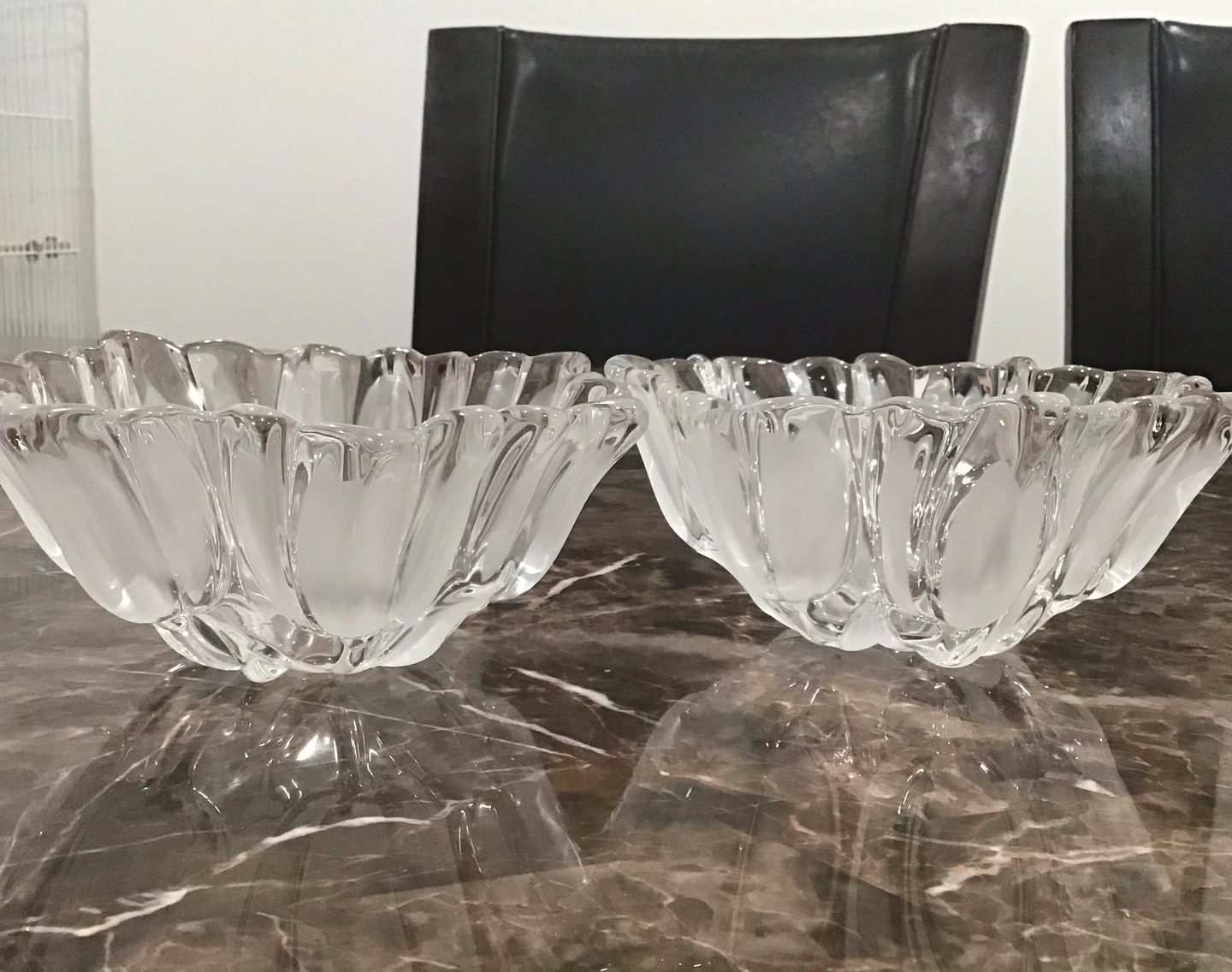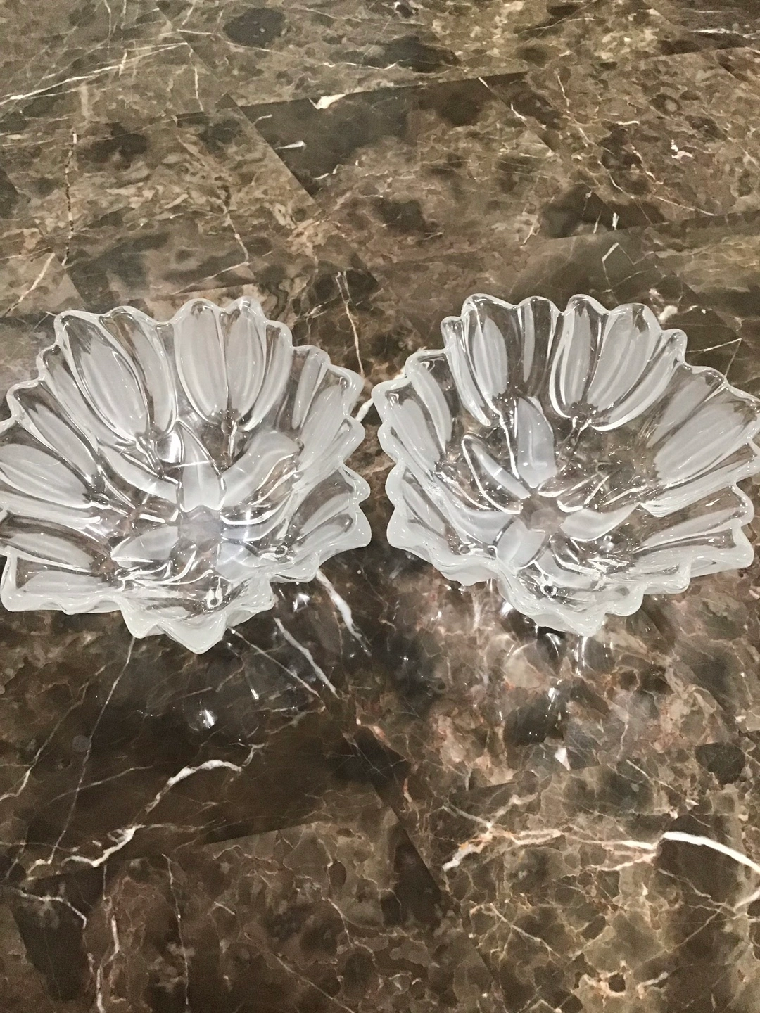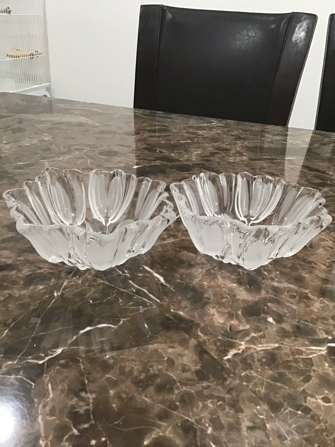 Selling a set of two decorative glass bowls. They have a unique floral design and would look great as centrepieces or for serving small items. They're in great condition and ready for a new home!