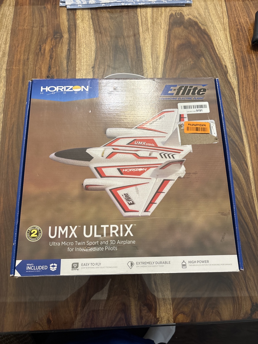 Selling a brand new Horizon E-flite UMX Ultrix Ultra Micro Twin Sport and 3D Airplane. It's still in the box and has never been used. The box is included!