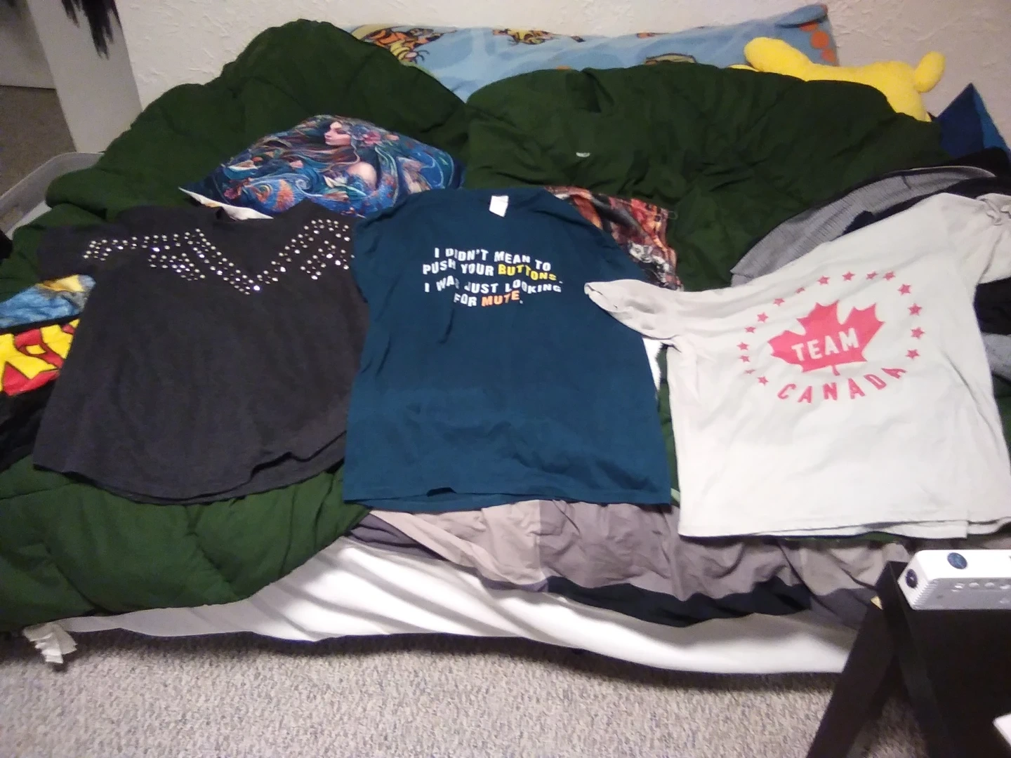 Some shirts I no longer want. the grey Canada one is a large kids size from michaels and only worn once;the turquoise one and gray are medium quite old but still in like new condition. $5 each or 8$ all