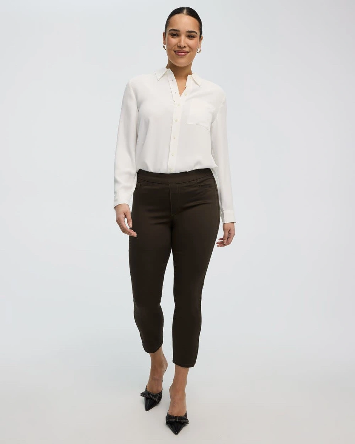 Swap your regular jeans for these pull-on denim legging cropped without anyone noticing. Stylish and super comfortable.
