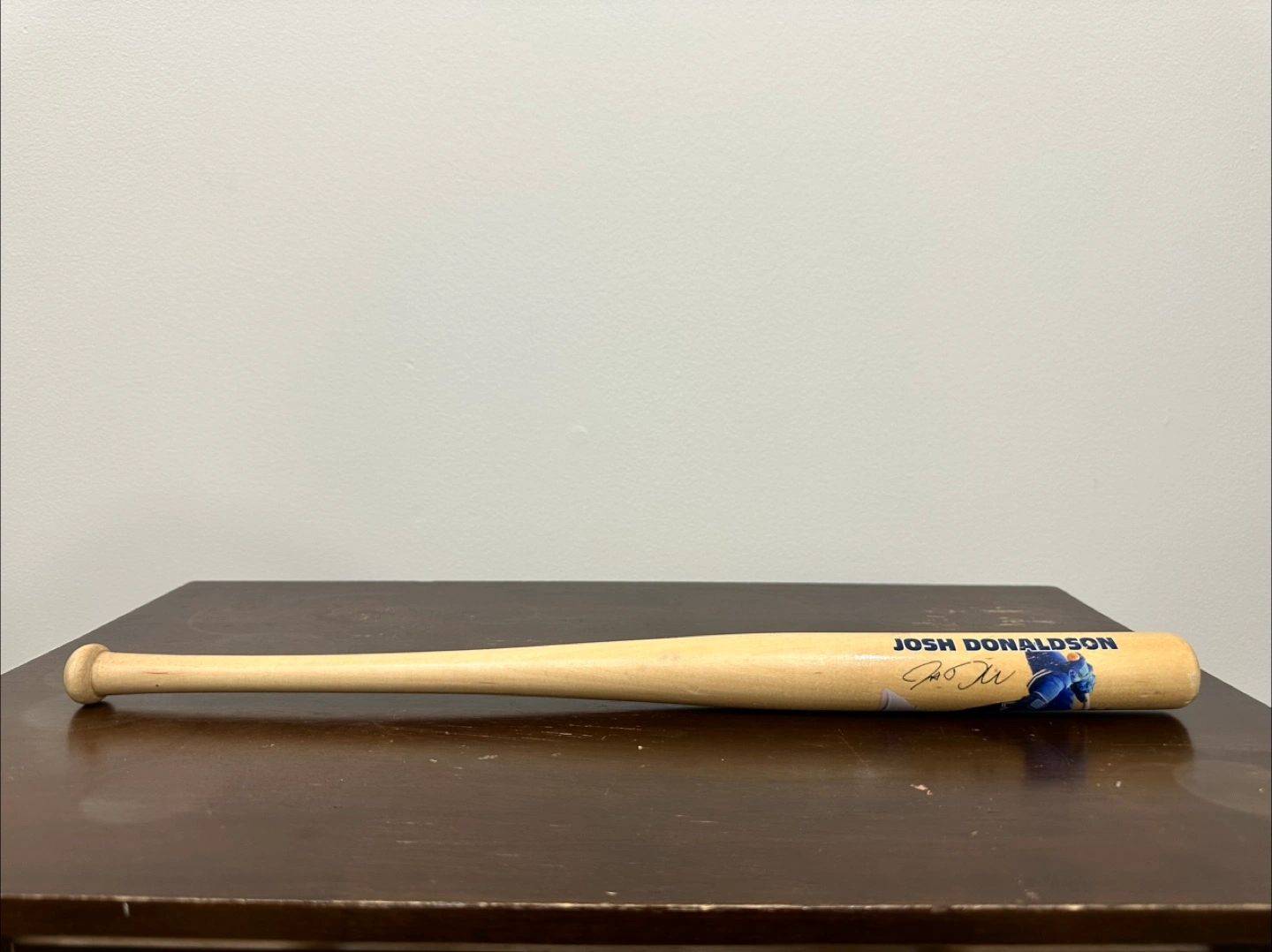 Selling a mini souvenir baseball bat showcasing a pre-printed autograph by Josh Donaldson! It's in okay condition and would be perfect for any Blue Jays fan or sports memorabilia collector.