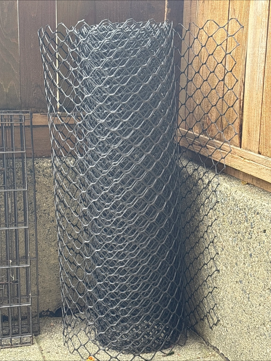 Giving away some black plastic garden mesh fencing. It's great for protecting plants or creating a barrier in your garden. Easy to work with and install! I used it to protect my dogs. Must take posts as well.