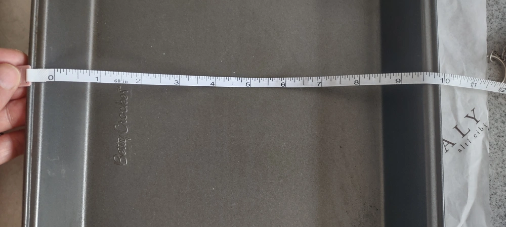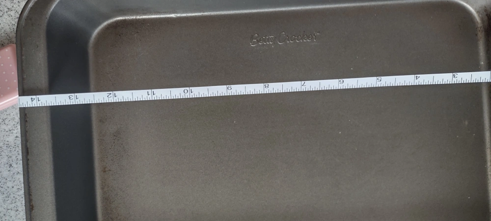Betty Crocker baking pan. It measures approximately 14 x 10 inches. not new. used it. good condition.