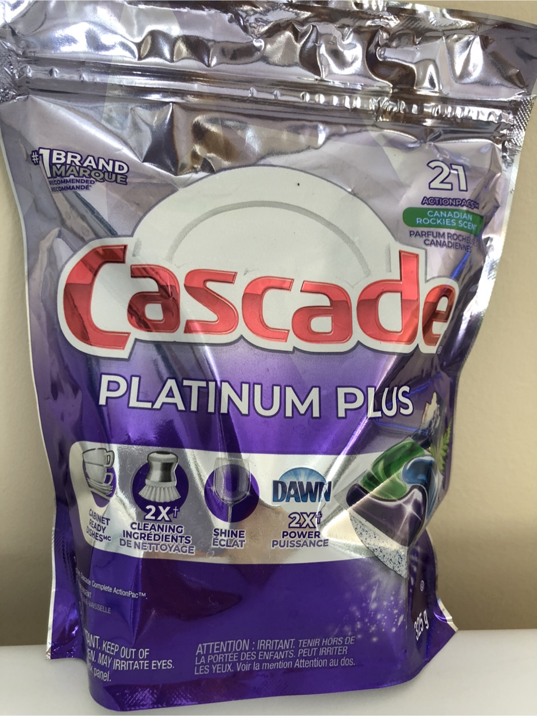 Selling a bag of Cascade Platinum Plus ActionPacs in the Canadian Rockies scent. These dishwashing pods offer 2x cleaning ingredients and shine, plus Dawn 2x power! They're designed to leave your dishes cabinet-ready (325g)