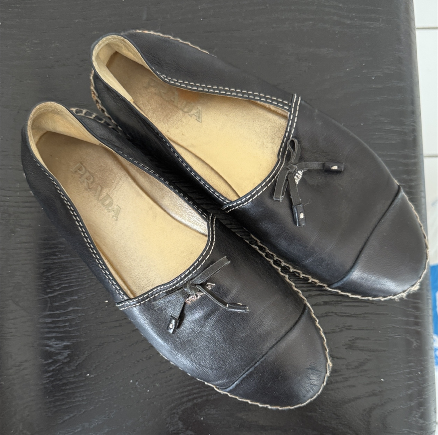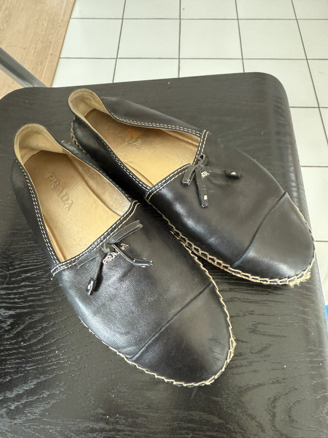 1 / 31 / 3Buy & SellPrada Black Leather Espadrille Flats - Size 36Prada Black Leather Espadrille Flats - Size 36$150Selling a pair of gently used Prada espadrille flats in black leather. Selling for a friend. Cash onlyConditionOkaySize36BrandPradaWHERE TO MEETRichmondView MapSELLERverifiedRonaBridgeport1176 reviews0 chats·0 favorites·14 viewsSEND CHAT TO SELLERHi Rona! I’m interested in your listing.Hi Rona! I’m interested in your listing.Get the Karrot app to chatSign In to chat