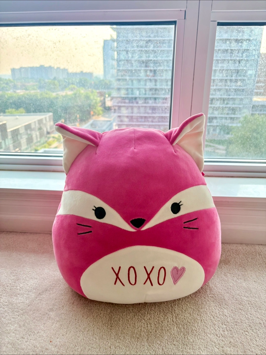 Selling a cute pink Squishmallow fox! It's been sitting on a shelf, in great condition and ready for a new home. It features an XOXO design on the front.
