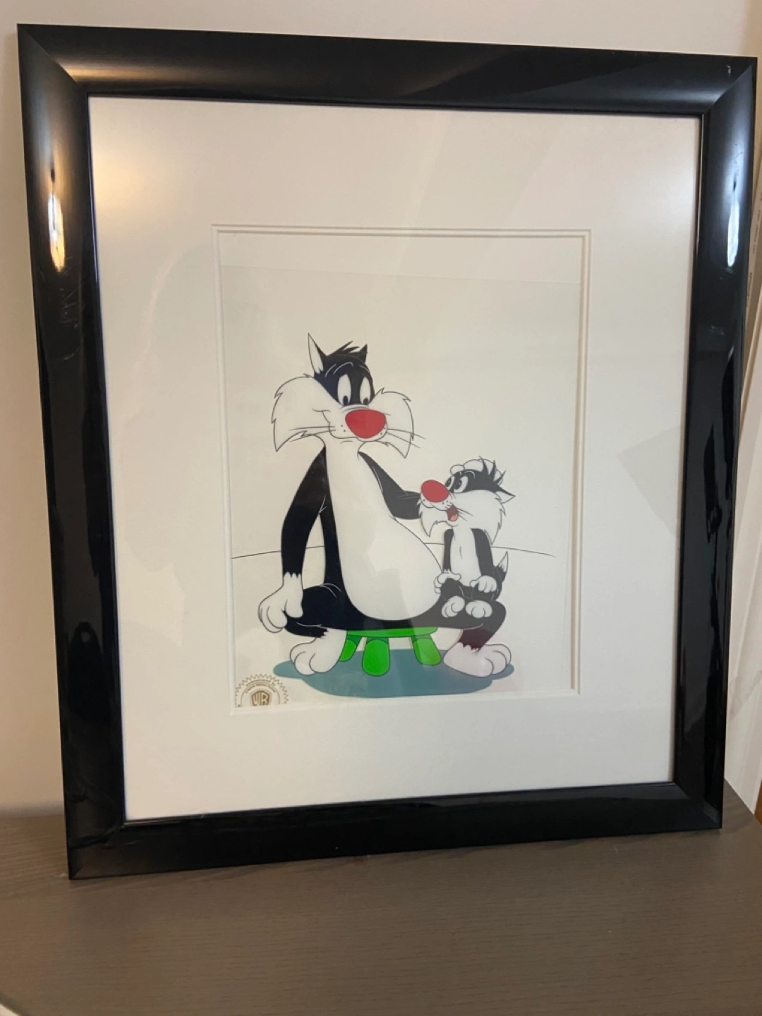 COLLECTOR’S ITEM! This is a framed animation cel featuring Sylvester and his son. Mint condition. It's an Authenticated Limited Edition Series from Warner Brothers. This would be a great addition to any cartoon lover's collection! And an incredible gift for anyone!