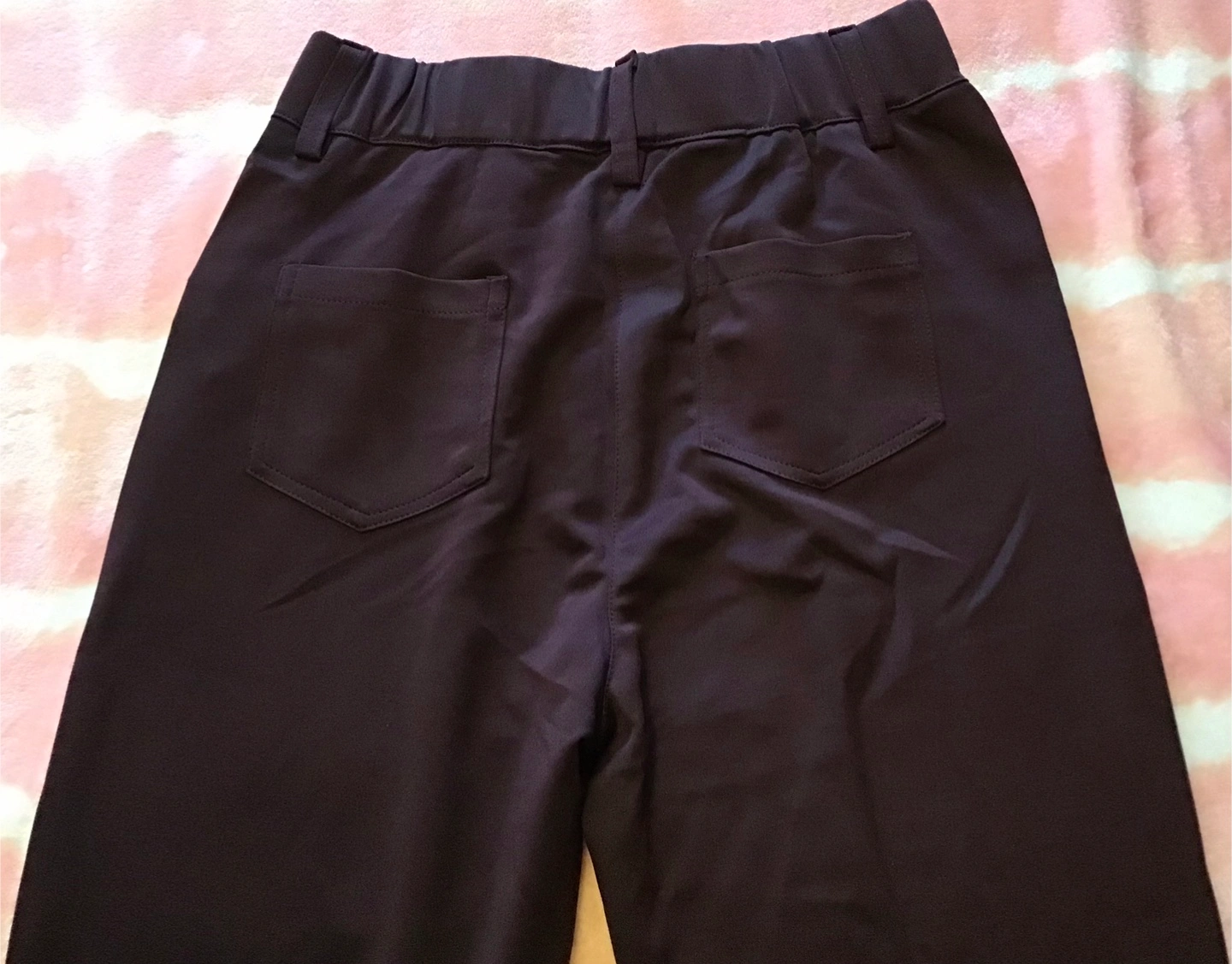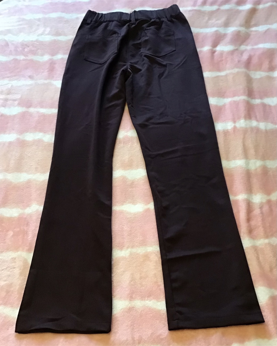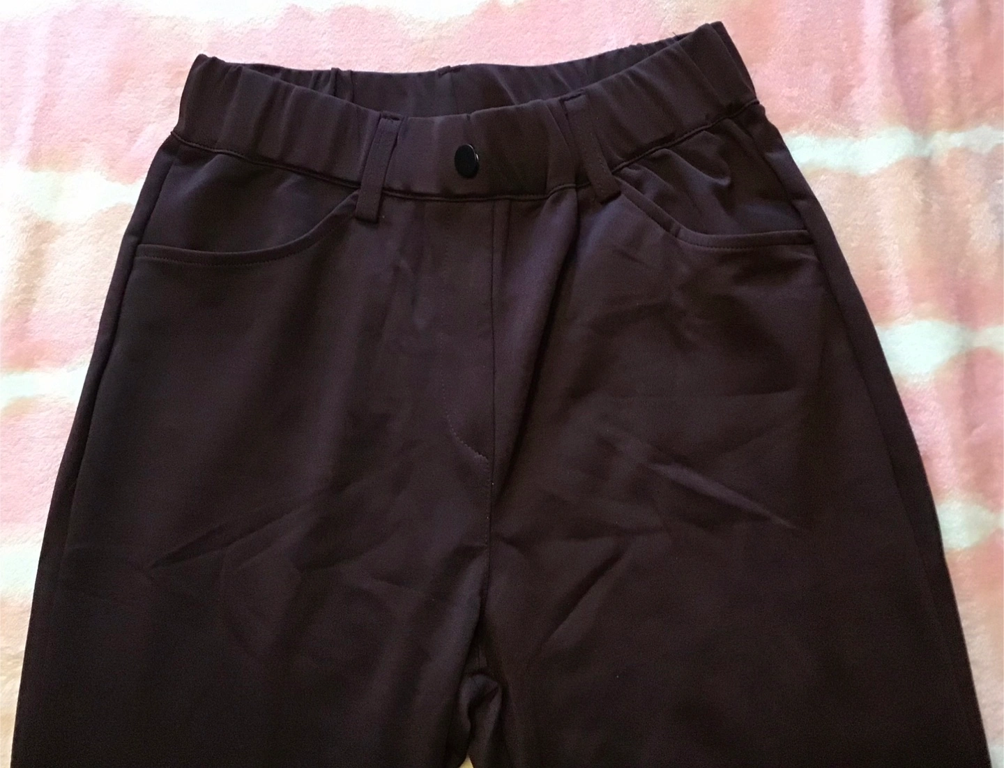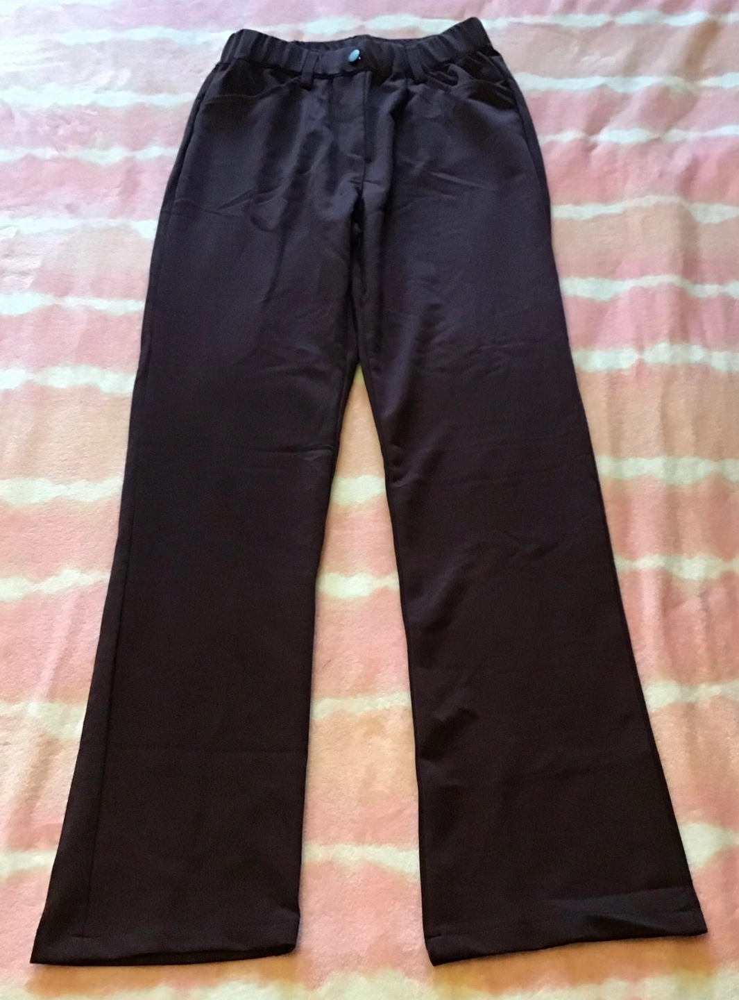 Selling a pair of sepia trousers with an elastic waistband. They're in great shape and super comfy! Perfect for everyday wear. 🤩