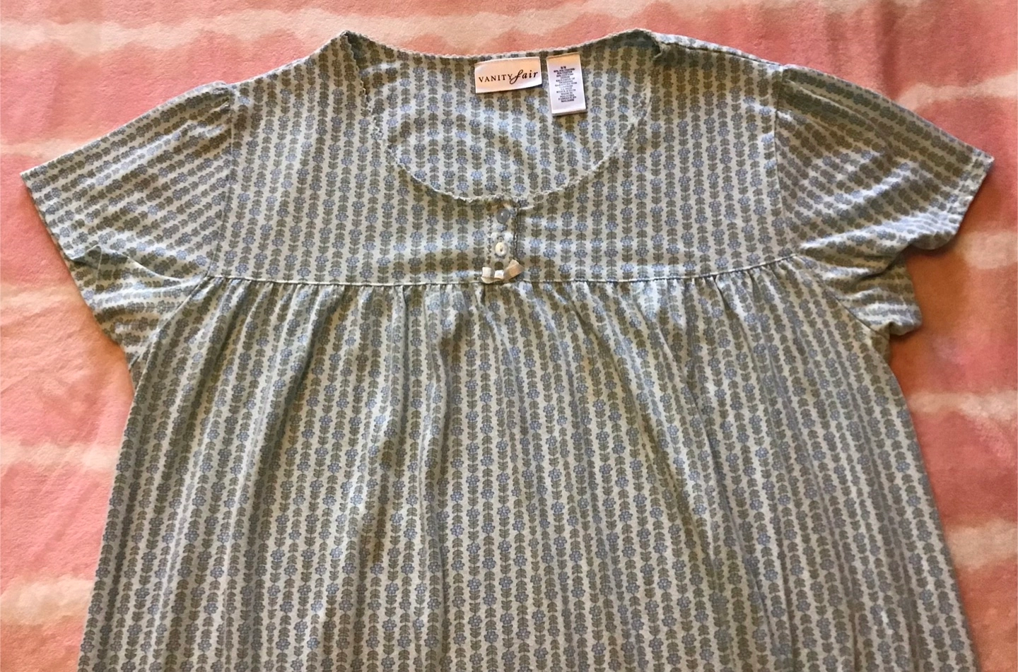 Selling a Vanity Fair nightgown in size medium. It's a comfy, lightweight nightgown with a cute pattern. Perfect for a cozy night in! 🤩