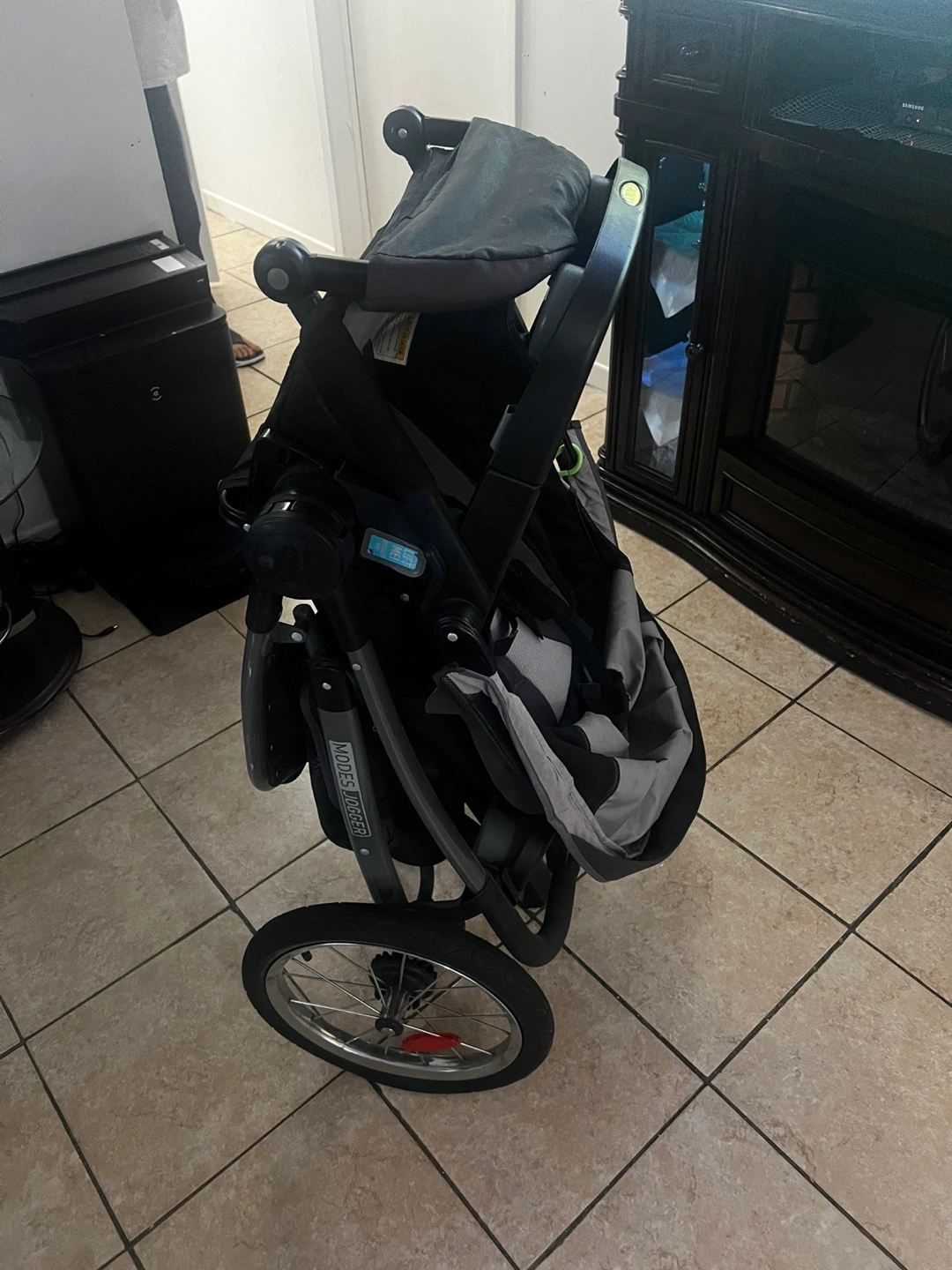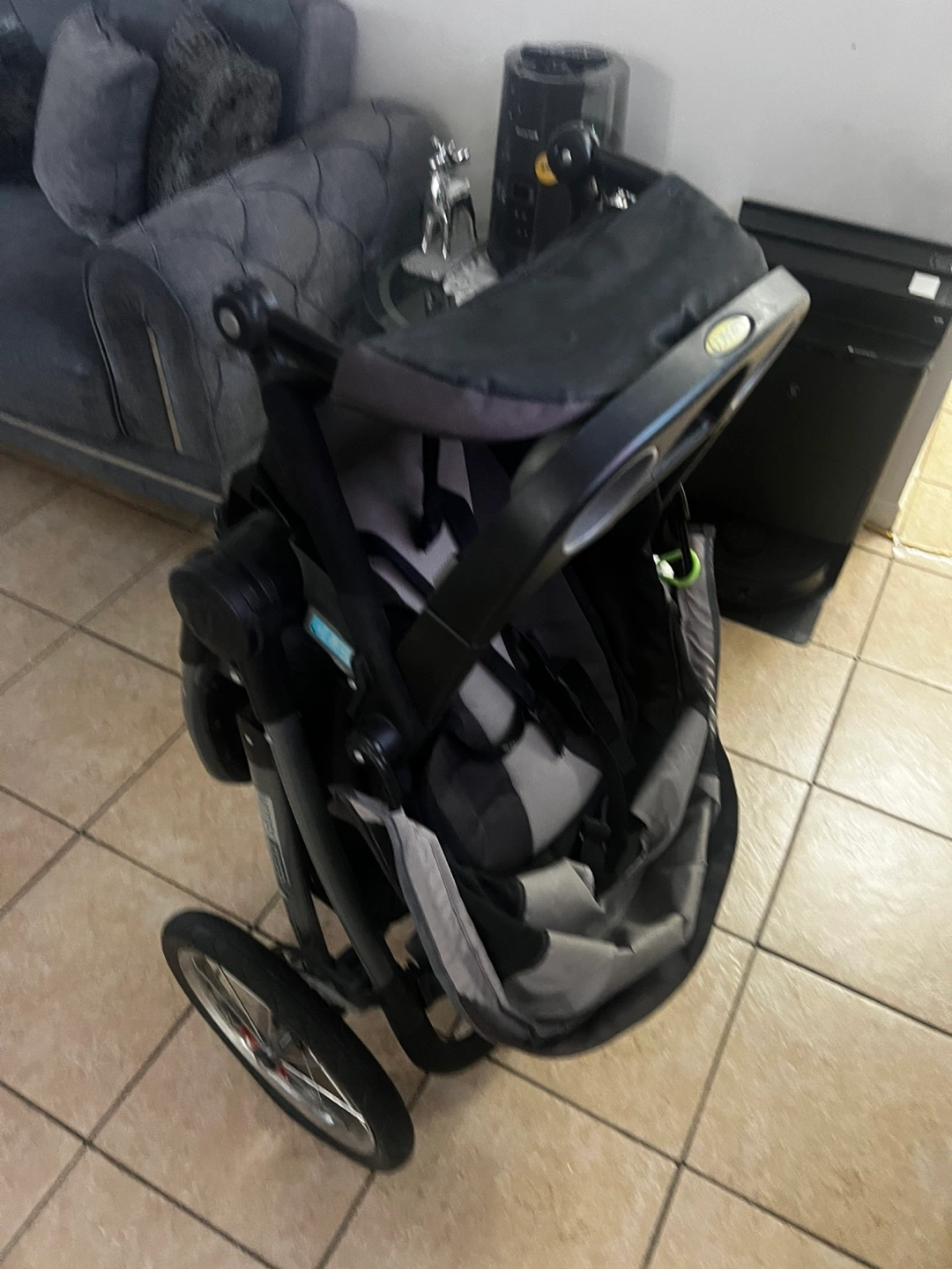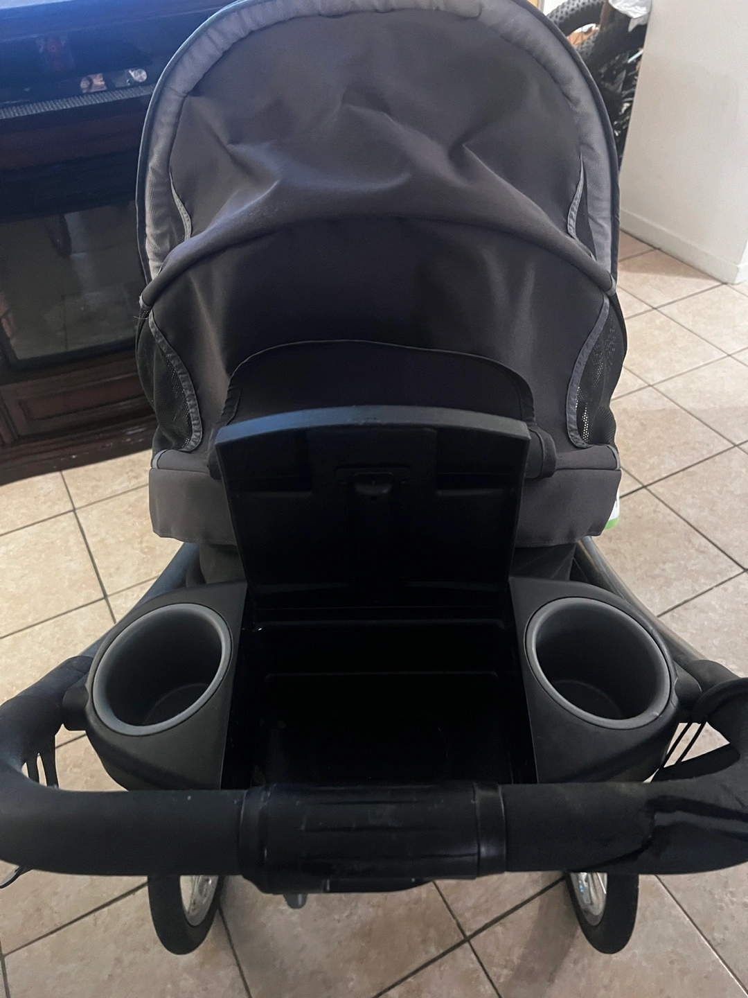 Selling a used Graco jogger stroller. It features a parent tray with cup holders and a large storage basket underneath. Perfect for walks and runs! Very neat and clean with no stains, will take any price you have in mind.