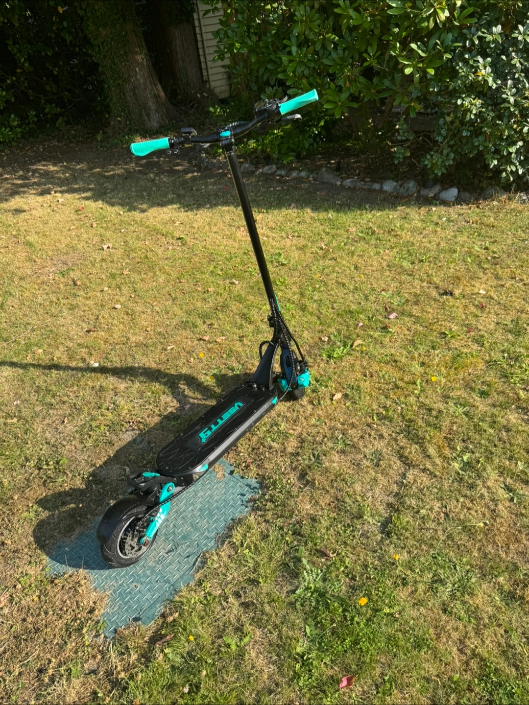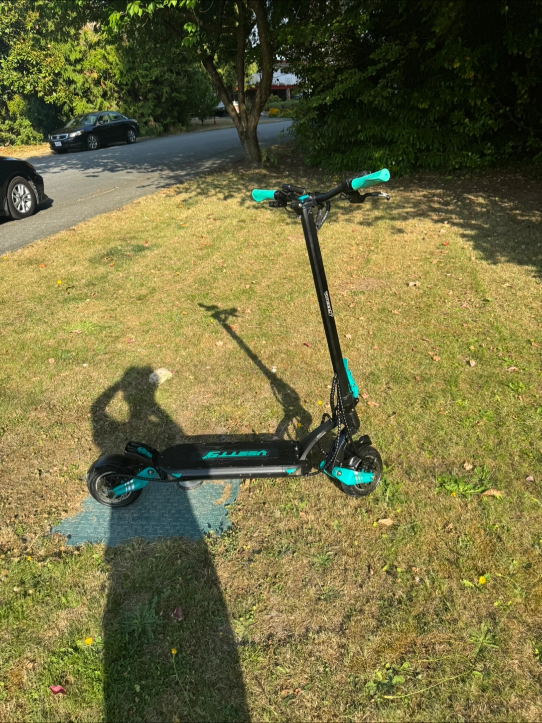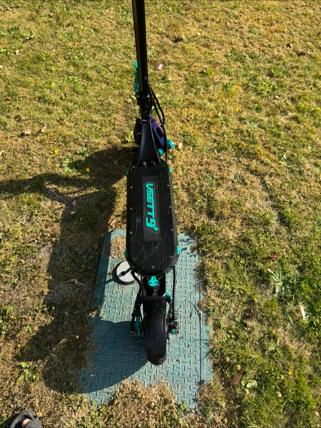 Selling a used EWheels/VSETT 9 electric scooter. It has some wear and tear but is still in working condition. Includes a spare tire, tube, and other components as pictured.