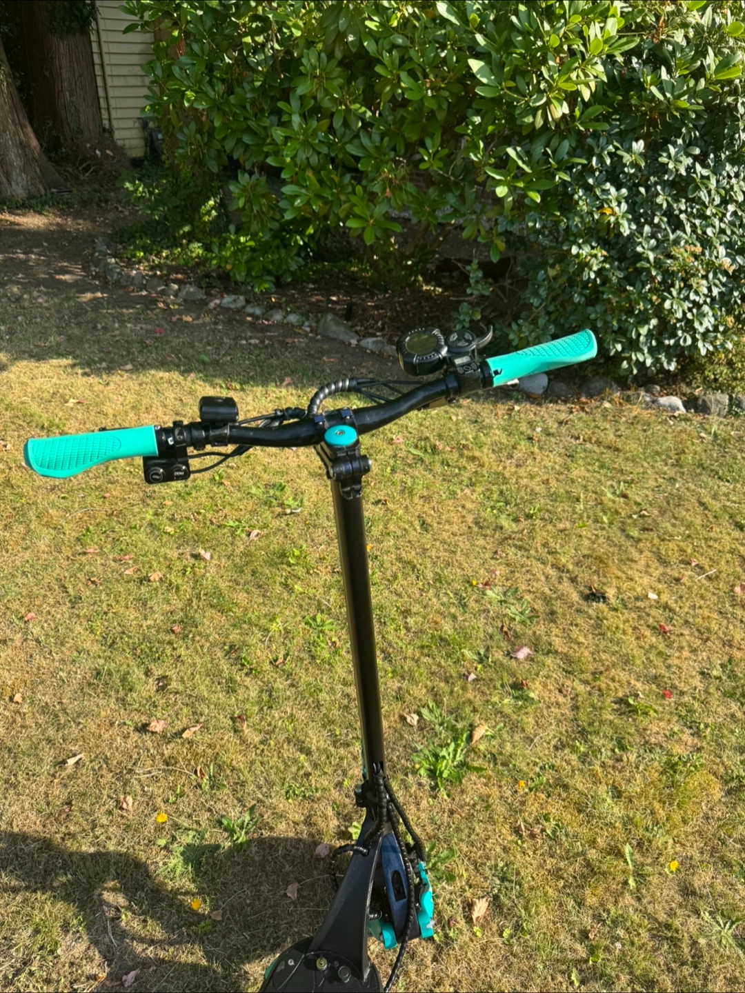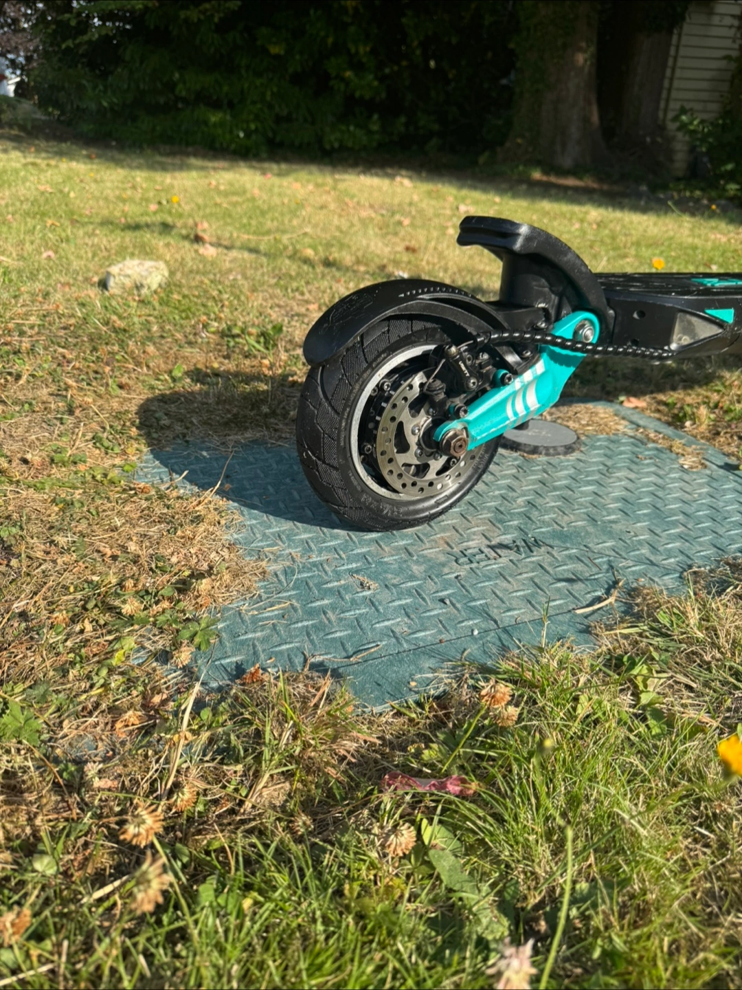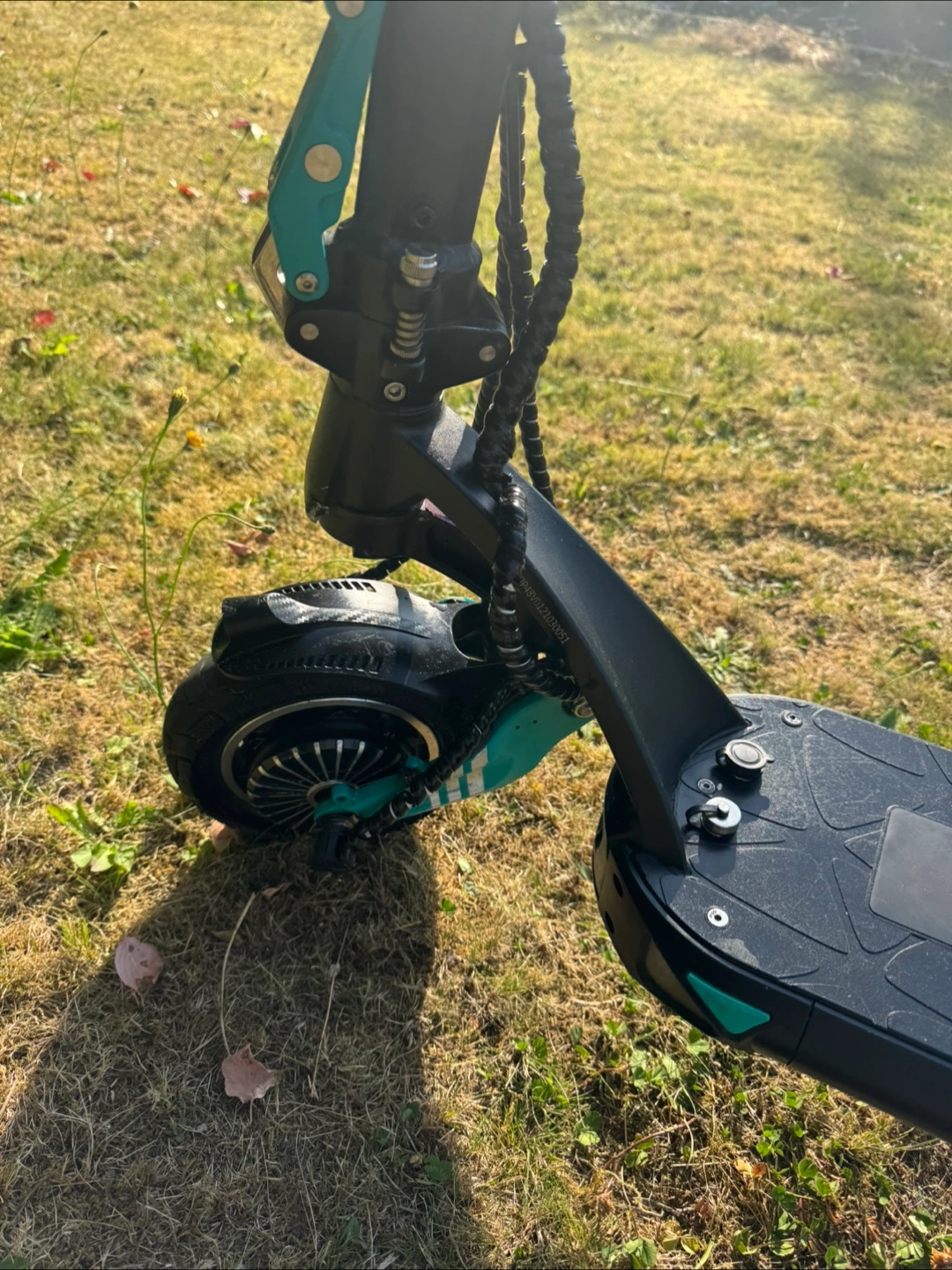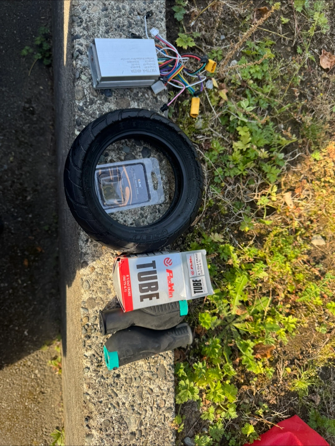 Selling a used EWheels/VSETT 9 electric scooter. It has some wear and tear but is still in working condition. Includes a spare tire, tube, and other components as pictured.