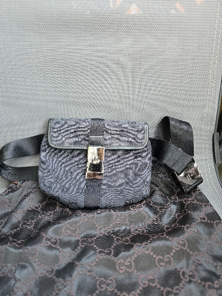 Selling a Gucci monogram belt bag. It's in great condition and comes with its original dust bag. The bag features the iconic Gucci monogram pattern and a buckle closure. Perfect for keeping your essentials close at hand!