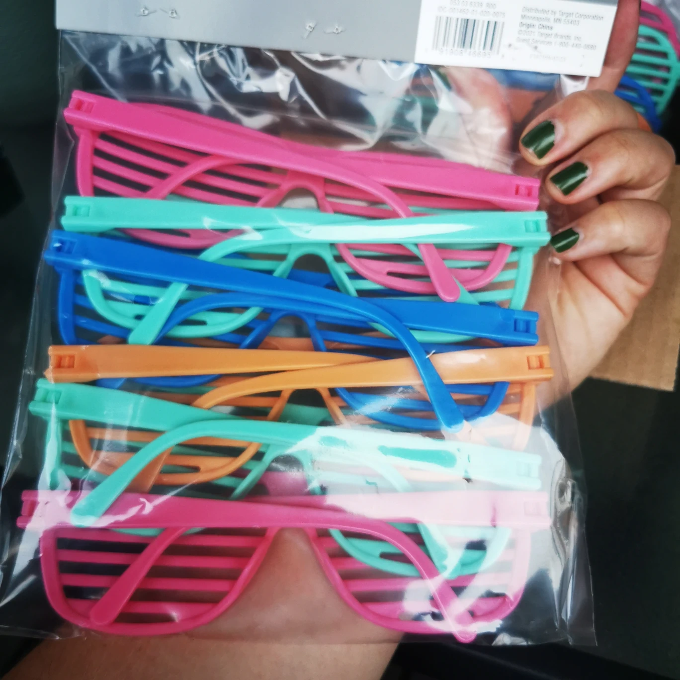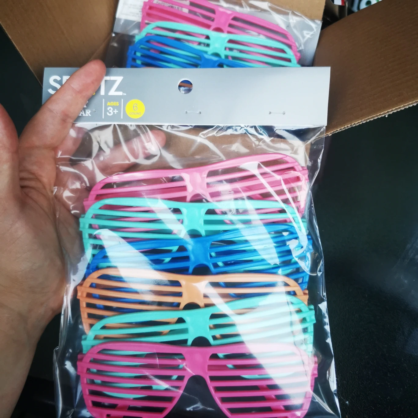 616I'm selling a pack of brand new shutter shading glasses! These are perfect as party favours. The pack includes a variety of colours like pink, teal, blue, and orange. 5$ per pack of 6