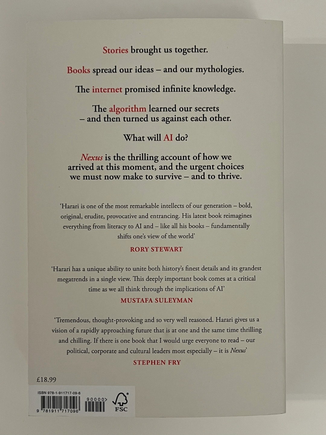 Selling "Nexus: A Brief History of Information Networks from the Stone Age to AI" by Yuval Noah Harari.