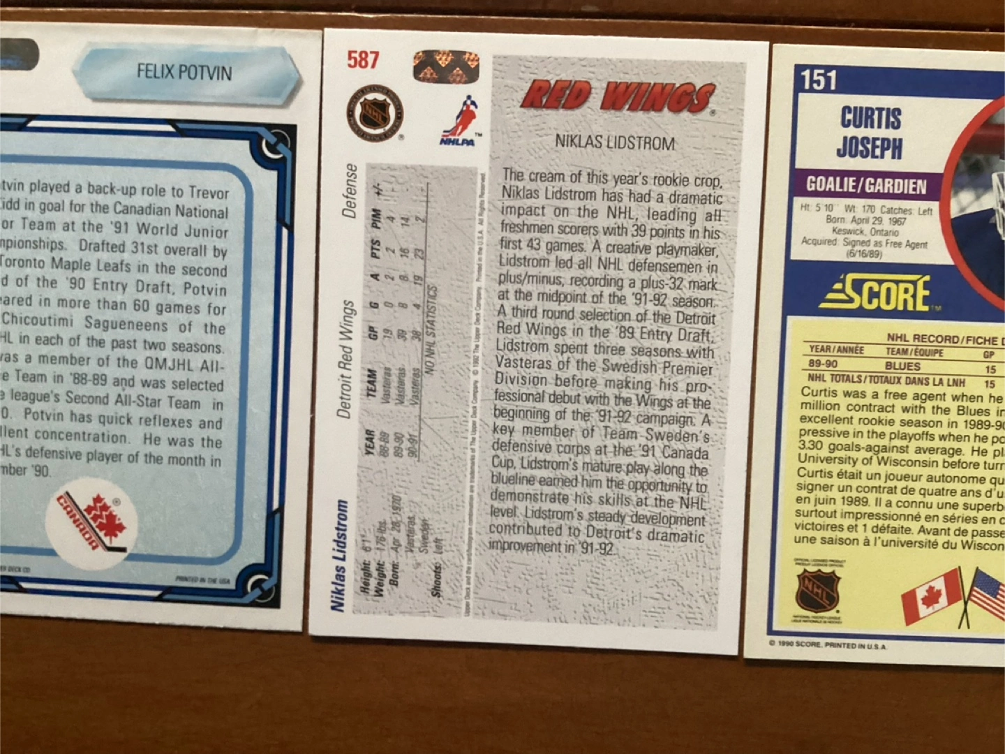 Felix Potvin #458, Niklas Lidstrom #587 & Curtis Joseph #151