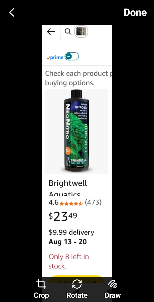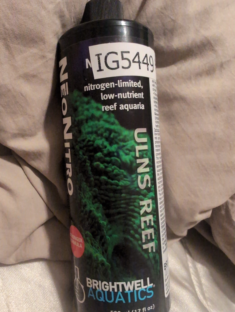 Selling a bottle of Brightwell Aquatics NeoNitro ULNS Reef supplement! It's designed for nitrogen-limited, low-nutrient reef aquaria.
