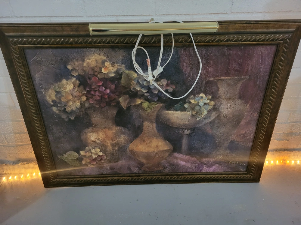Framed Floral Still Life Painting with Light 42" x 30"