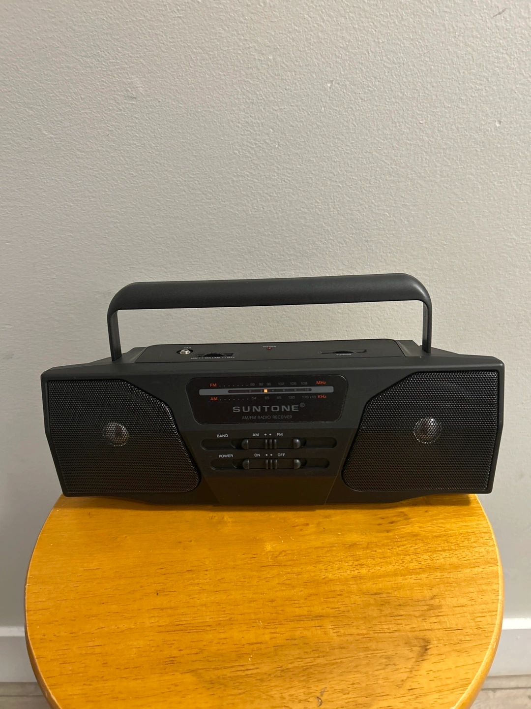 Selling a SunTone RR5500 AM/FM Radio Receiver. It's in great shape and ready to play your favourite tunes! It's a portable radio, so you can bring it anywhere. Includes an extendable antenna for better reception. Battery and adapter not included, but I can include 4 batteries for $2 extra.