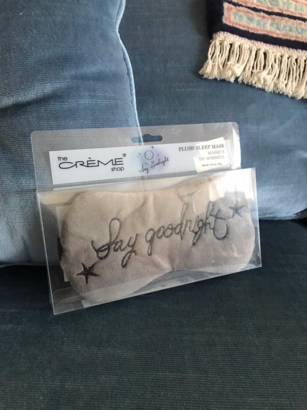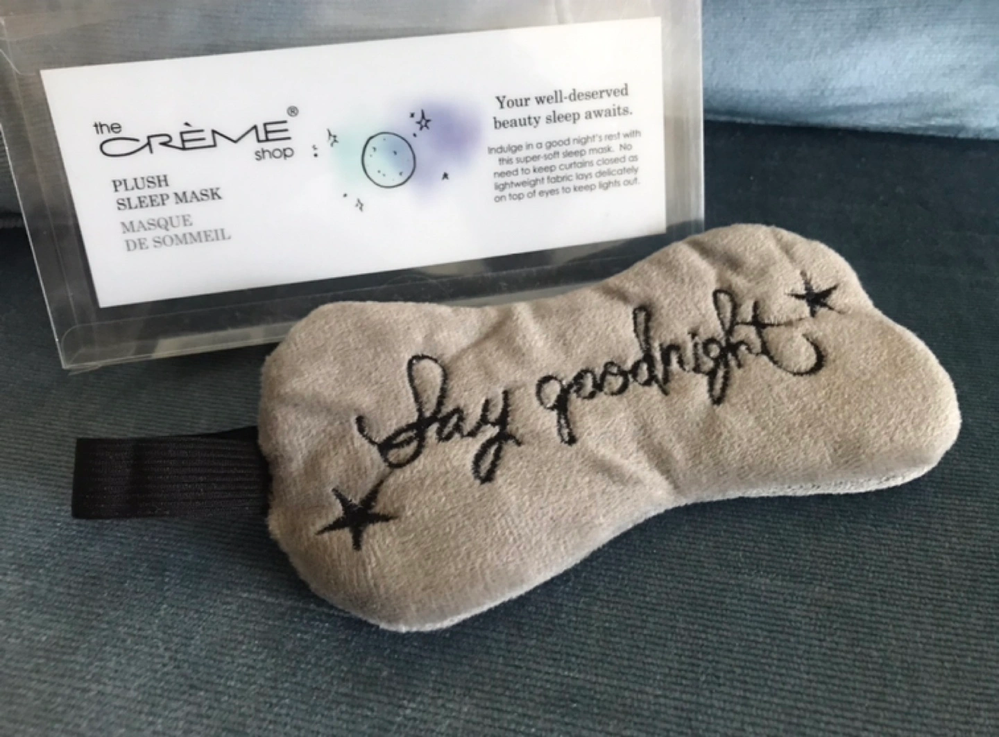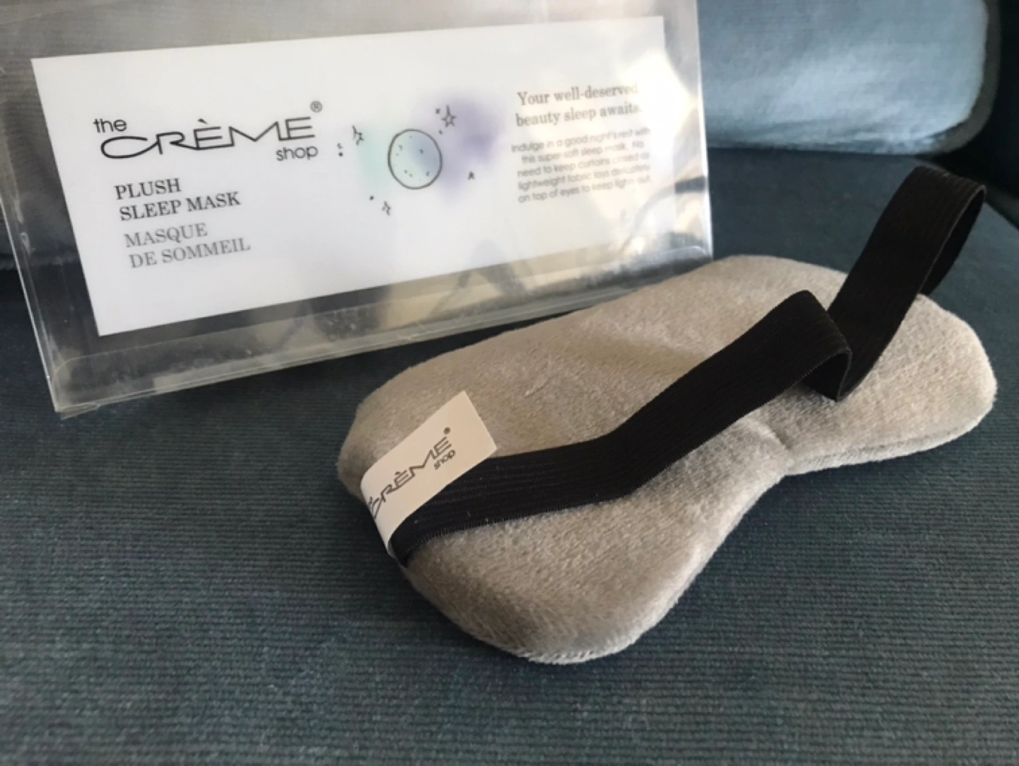 Soft grey color with black strap to fit snugly and comfortably to keep the light out while you sleep.