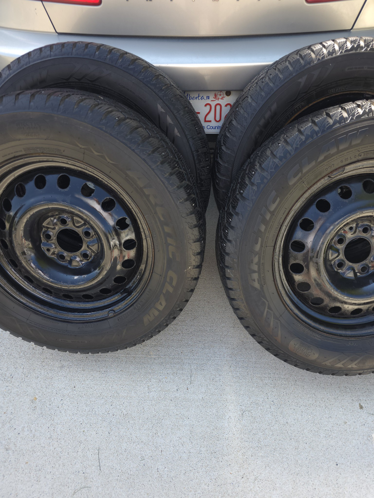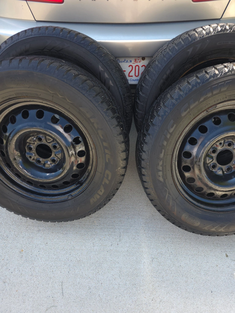 Selling a set of four Arctic Claw winter tires mounted on rims. Great for winter driving! The DOT code on the tires indicates a manufacturing date of 2020 August 08. I'm very good condition . tires are from a Hyundai Santa Fe, 2019. bolt pattern 5x114.3