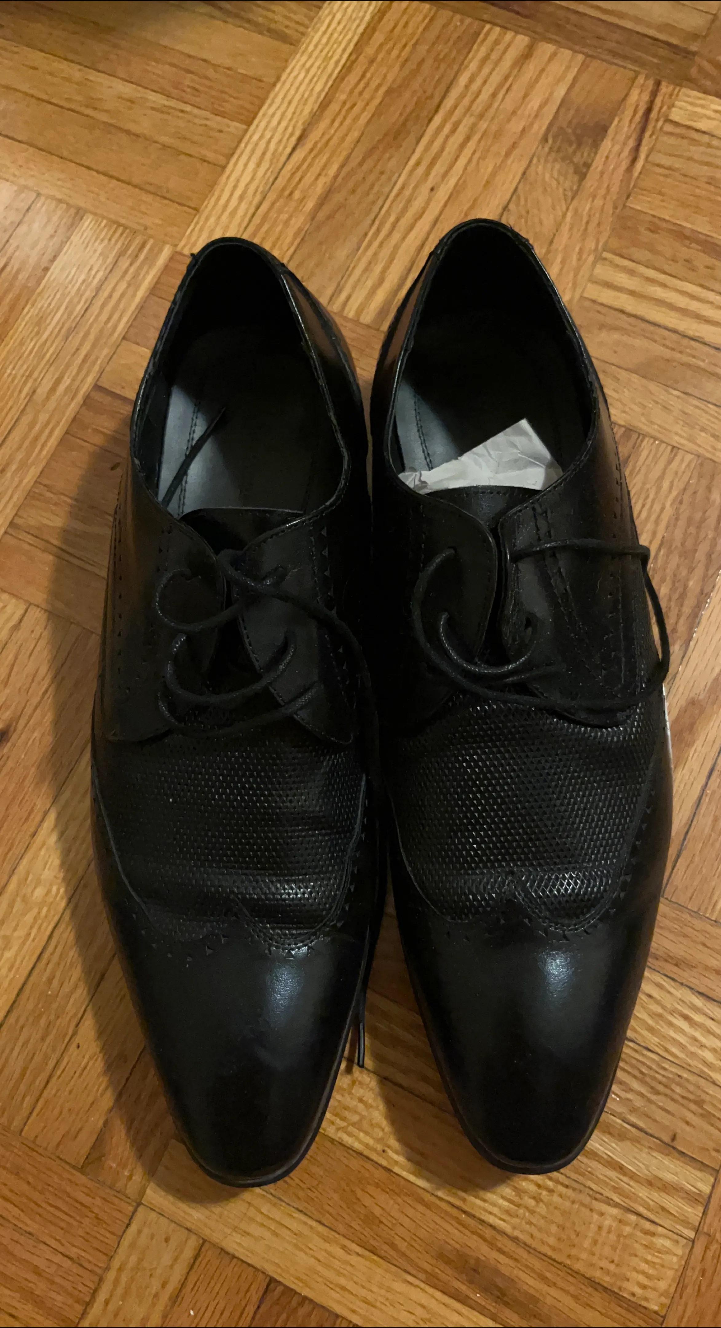 Selling a pair of Massimo Dutti shoes in black. They are a size 42. These shoes are made in Portugal and have a classic, stylish look. The soles show some wear, but they still have plenty of life left!