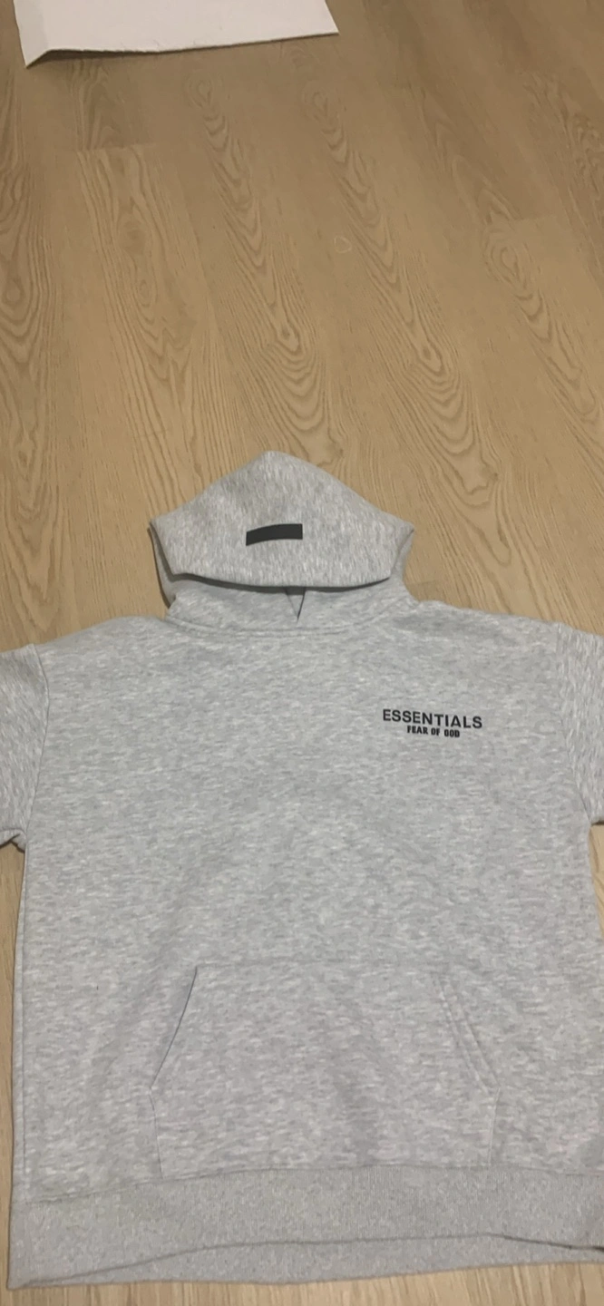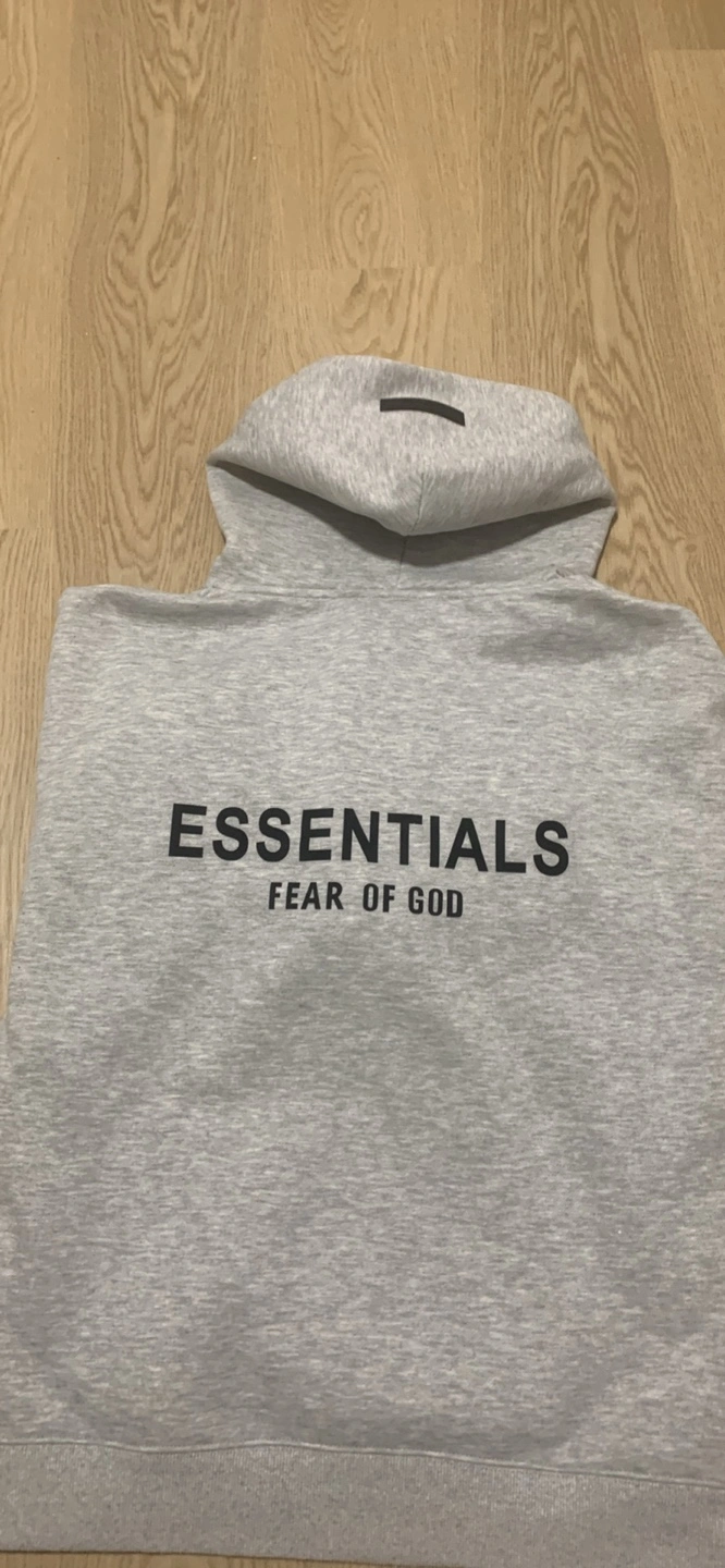Selling a grey Essentials Fear of God hoodie. It's in great condition and ready for a new home. The hoodie features the Essentials logo on the front and a rubberized logo on the hood. A comfy and stylish piece!