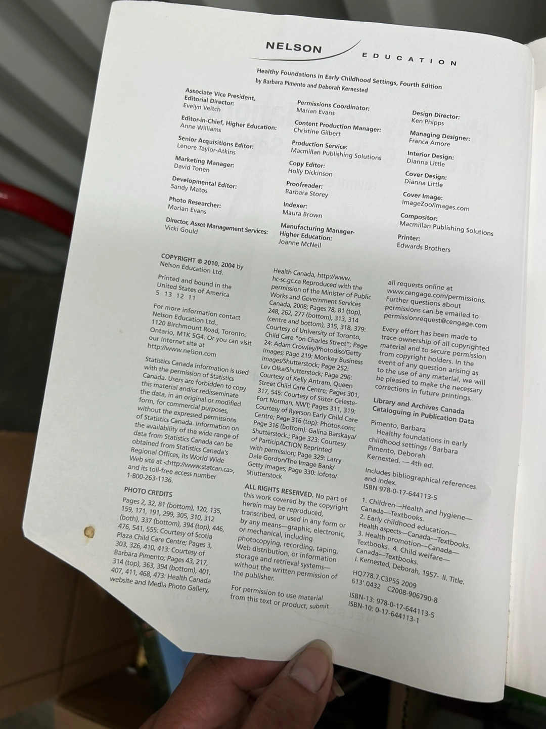 Selling a textbook titled "Healthy Foundations in Early Childhood Settings" by Barbara Pimento and Deborah Kernested. This is the fourth edition. It's a great resource for anyone in early childhood education!