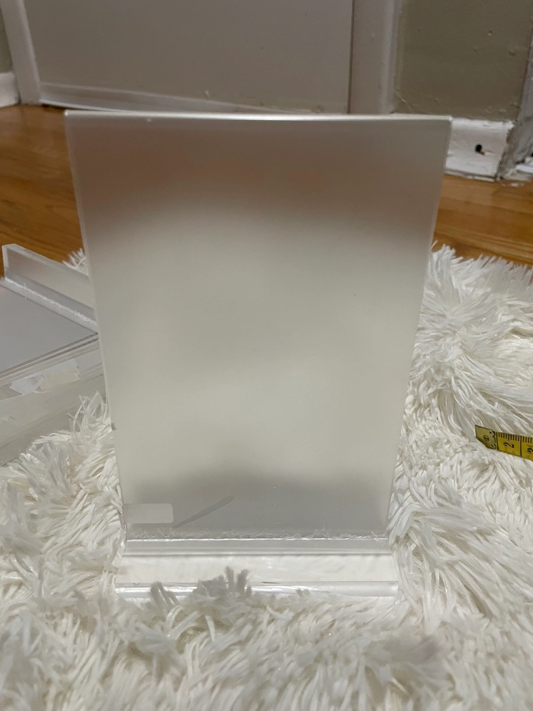 No trading… Selling an acrylic display stand. It measures approximately 6 inches in height and 4 inches in width. Perfect for displaying photos or small signs!