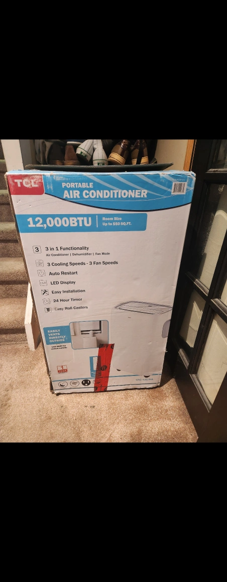 Selling 2 new TCL portable air conditioner with 12,000 BTU. It features: - 3-in-1 functionality (Cooler, Dehumidifier, Fan) - 3 cooling speeds and 3 fan speeds - Auto restart - LED display - Low installation - 24 hour timer - Easy roll casters Comes with the original box! 2 units available price is for both units never used brand new