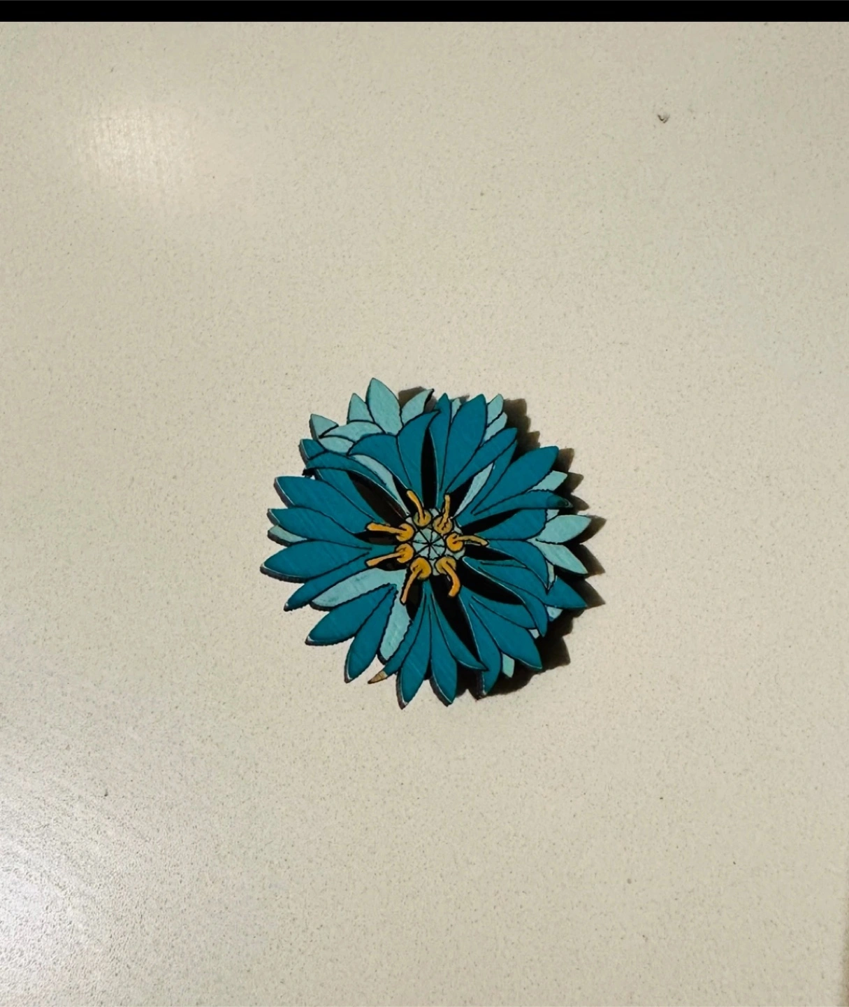 Here's a cute flower pin! It has a lovely blue colour with a yellow center