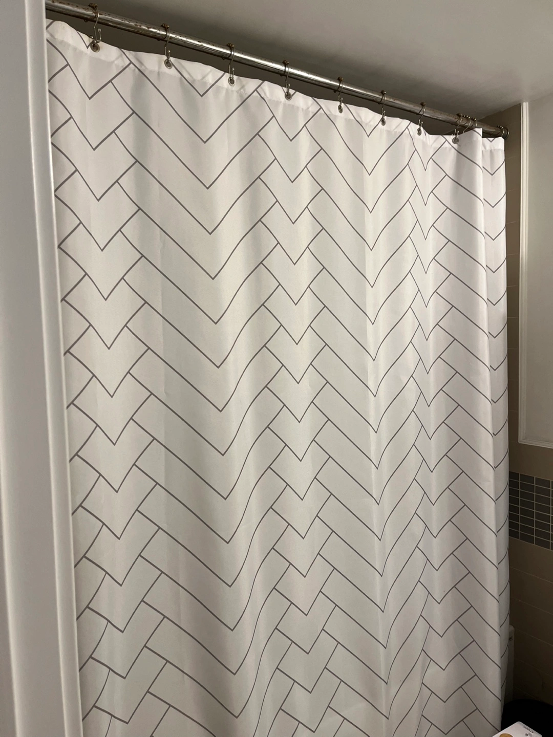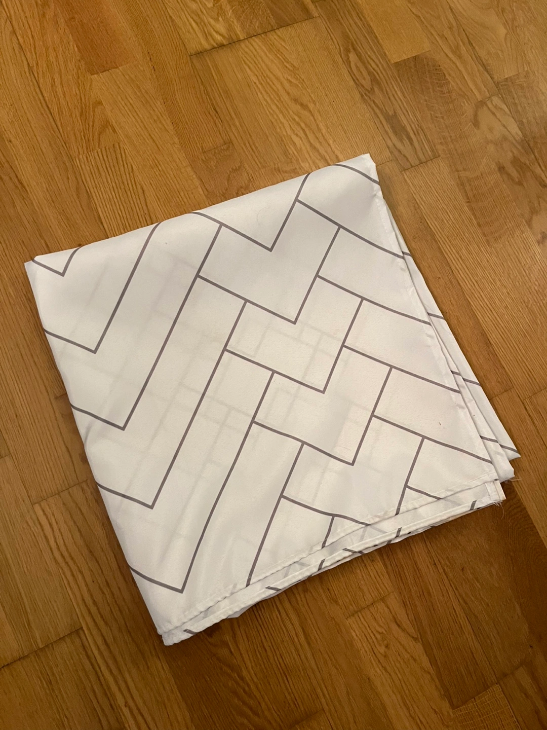 Selling a shower curtain with geometric pattern! It's in good condition, we just switched it out for something different.