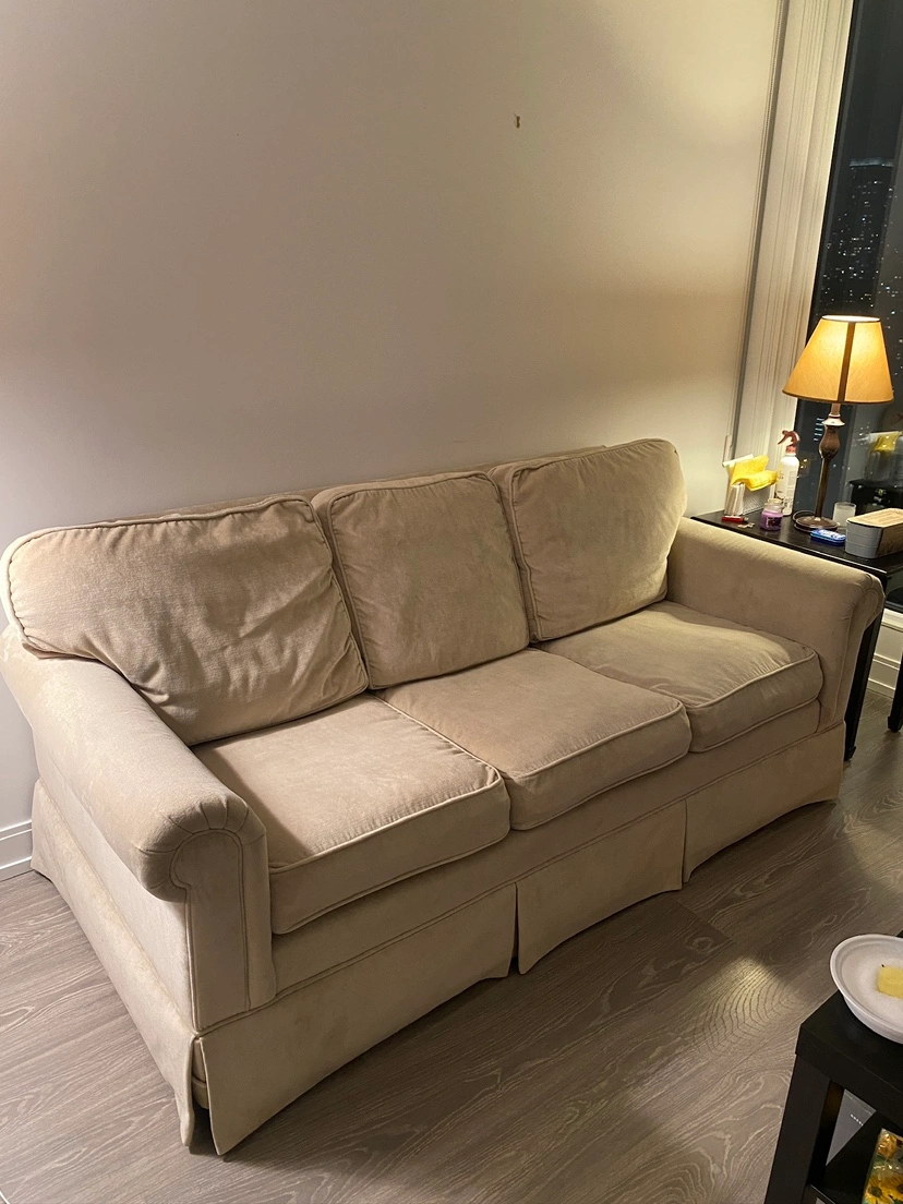 Looking to sell this comfy beige three-seater sofa! The couch is in good condition and would be a great addition to any living room. The neutral colour makes it easy to match with any decor.