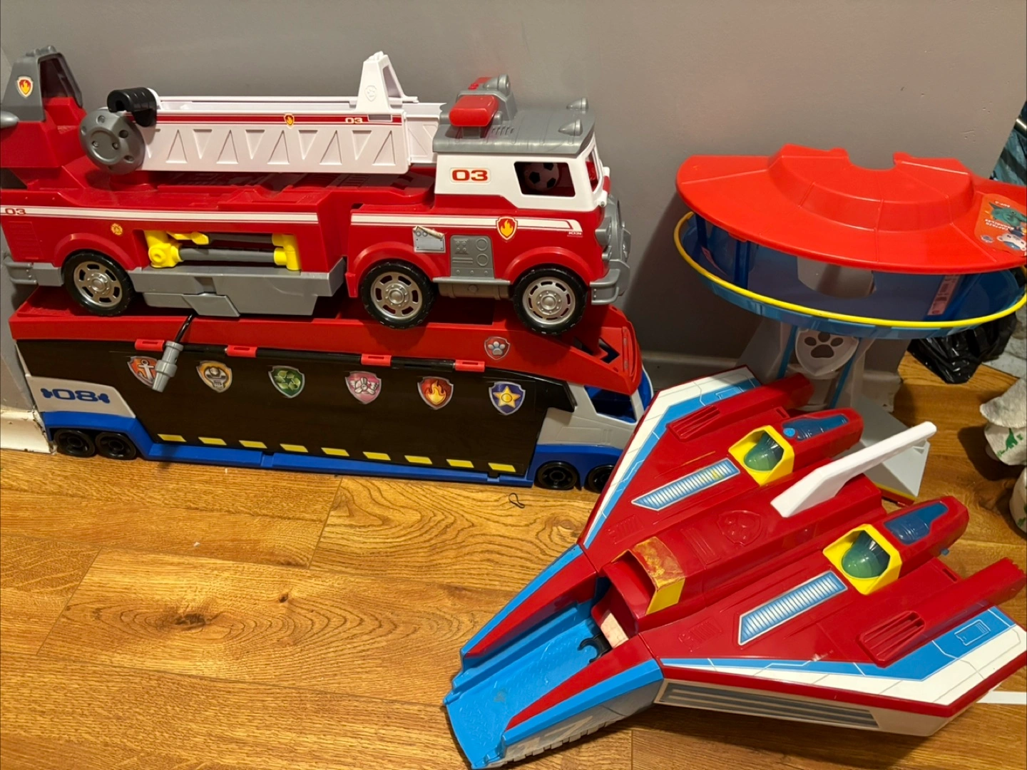 Selling a collection of toys including Paw Patrol vehicles and headquarters, and Gabby's Dollhouse with accessories. All in good condition and ready for a new home!