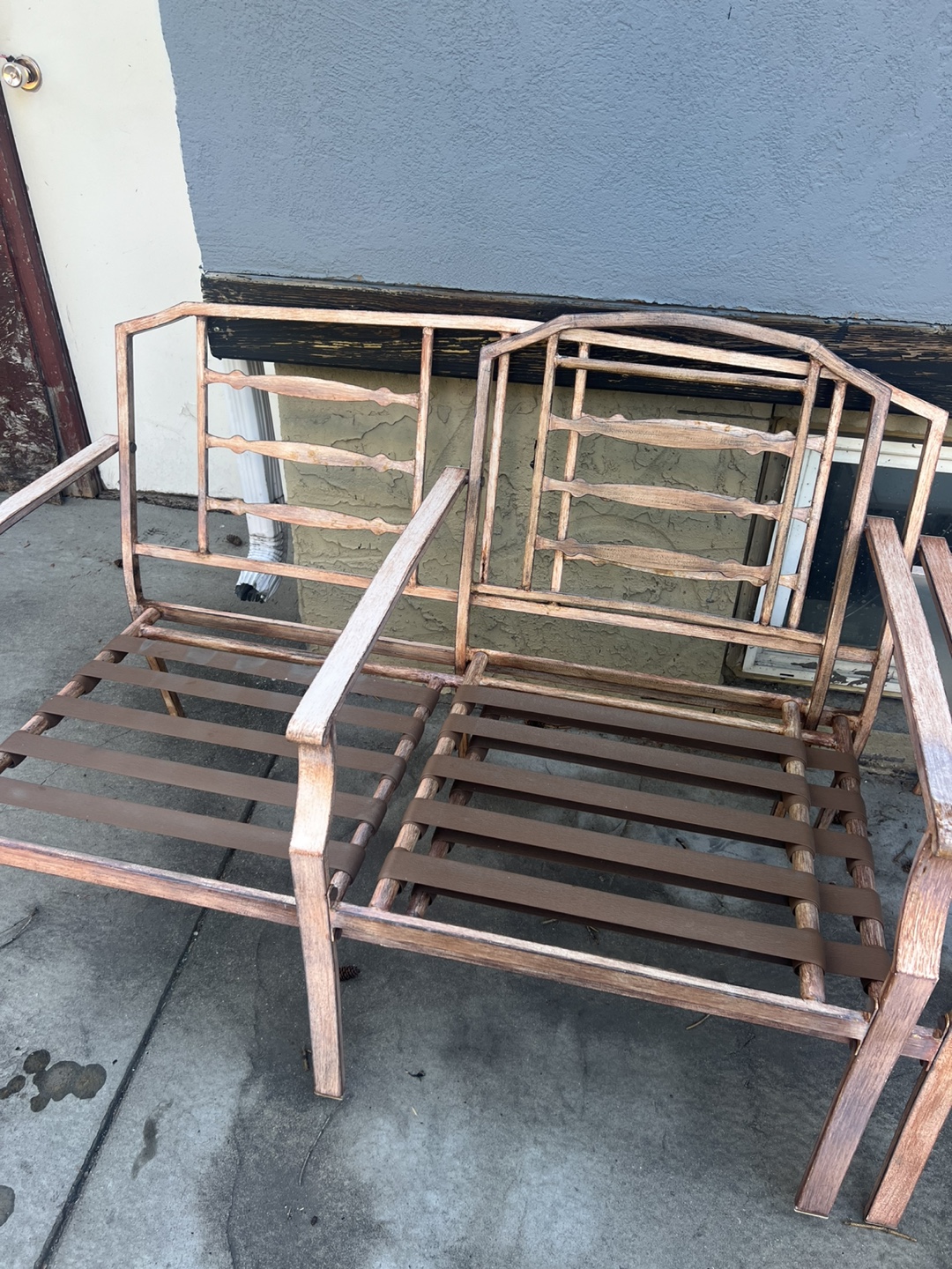In great shape! I love this set and was wanting to keep it. I sold at least 3 other sets we had, but these were to be kept. We are selling the house now, therefore I need to downsize, and can’t take these with me. They are so comfy, do not come with cushions as I found they weren’t necessary, but can be purchased for added comfort. This set includes: