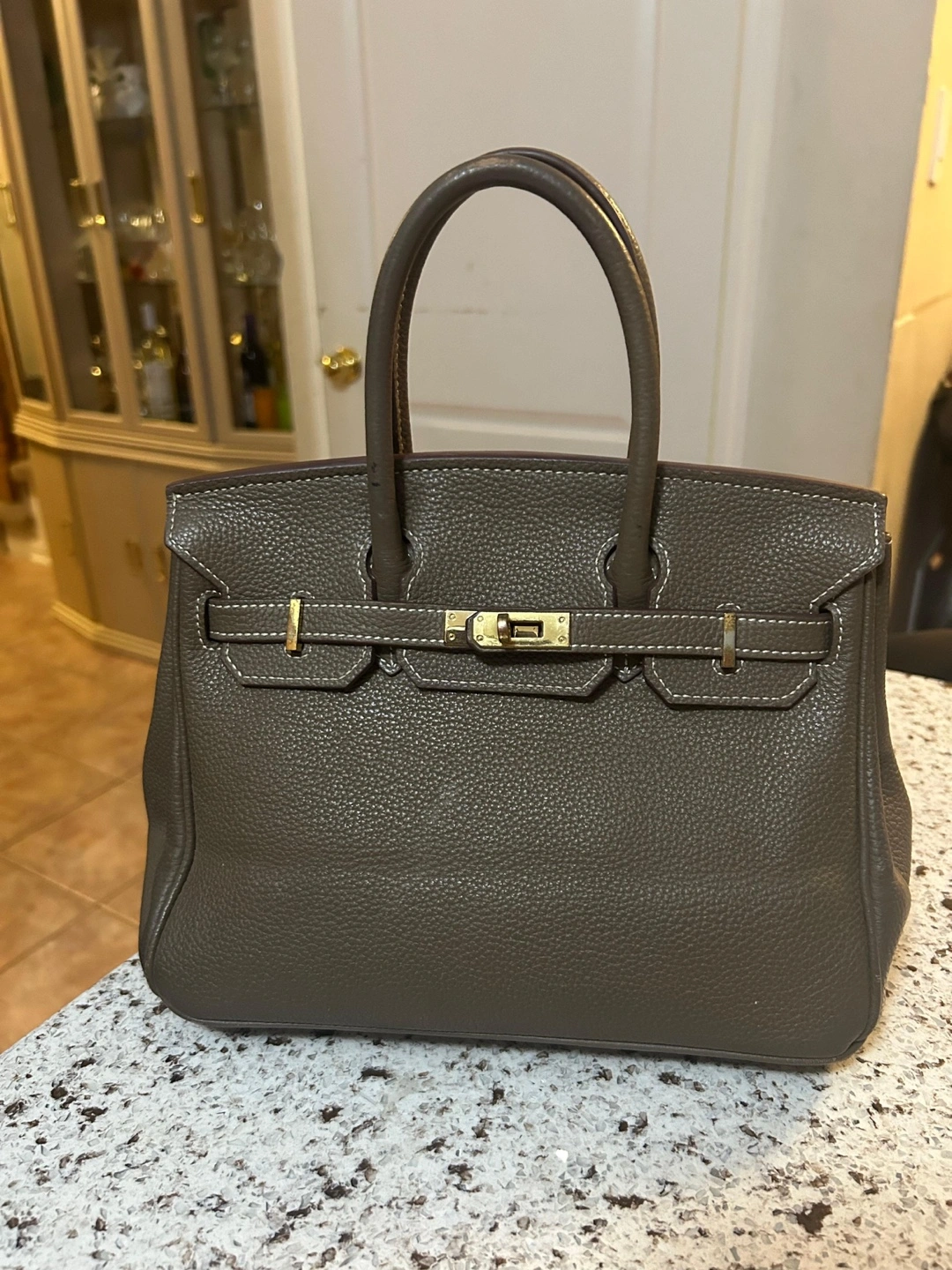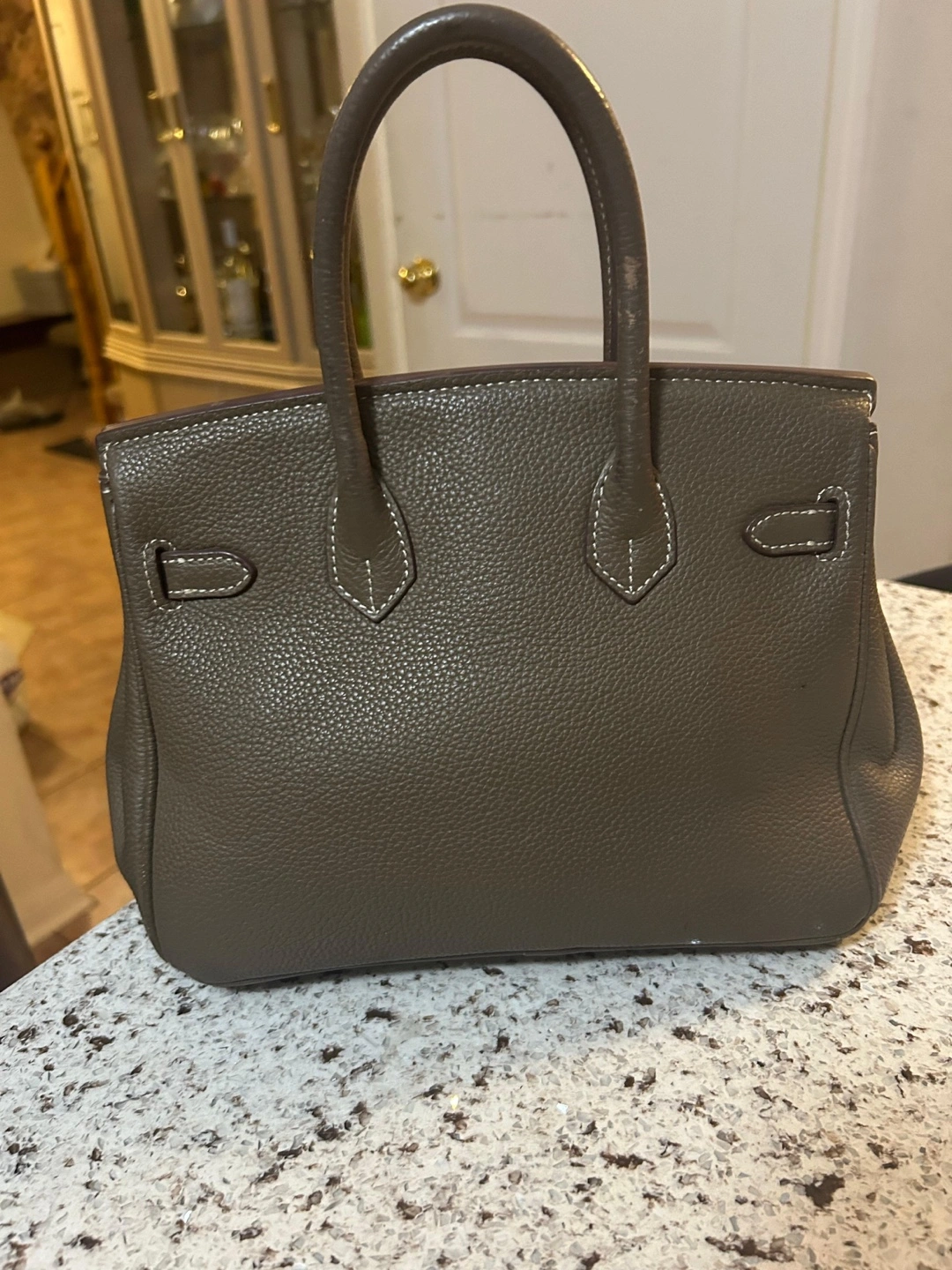 A stylish brown leather handbag, perfect for everyday use. It features a classic design with sturdy handles and a secure closure. The bag is in good condition and ready for a new home!