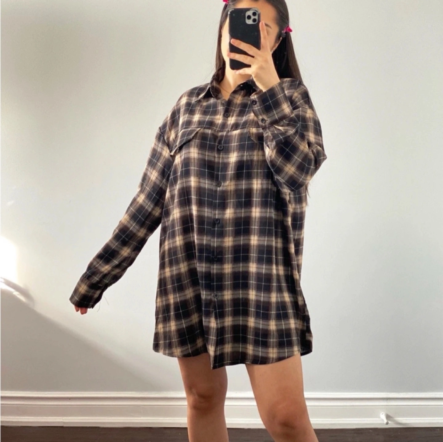 Prettylittlething | Oversized Plaid Top - Small