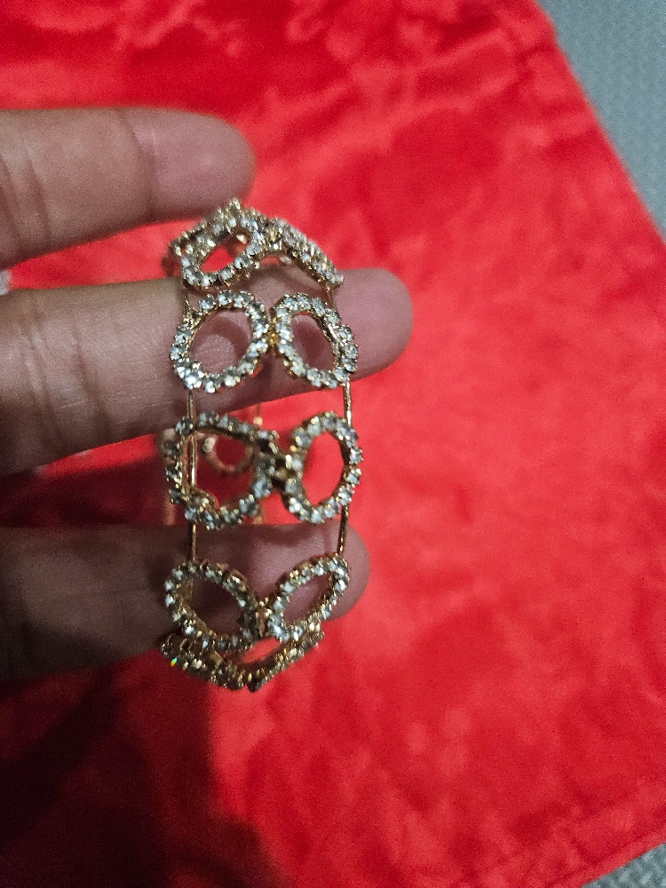 Selling a beautiful gold-tone bracelet adorned with sparkling rhinestones! It's in great condition and would add a touch of glam to any outfit