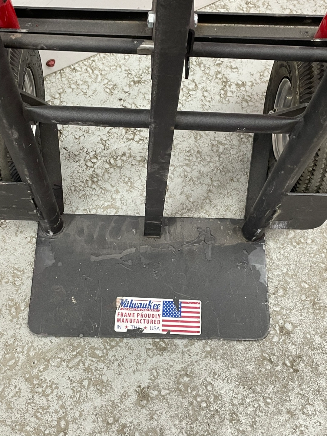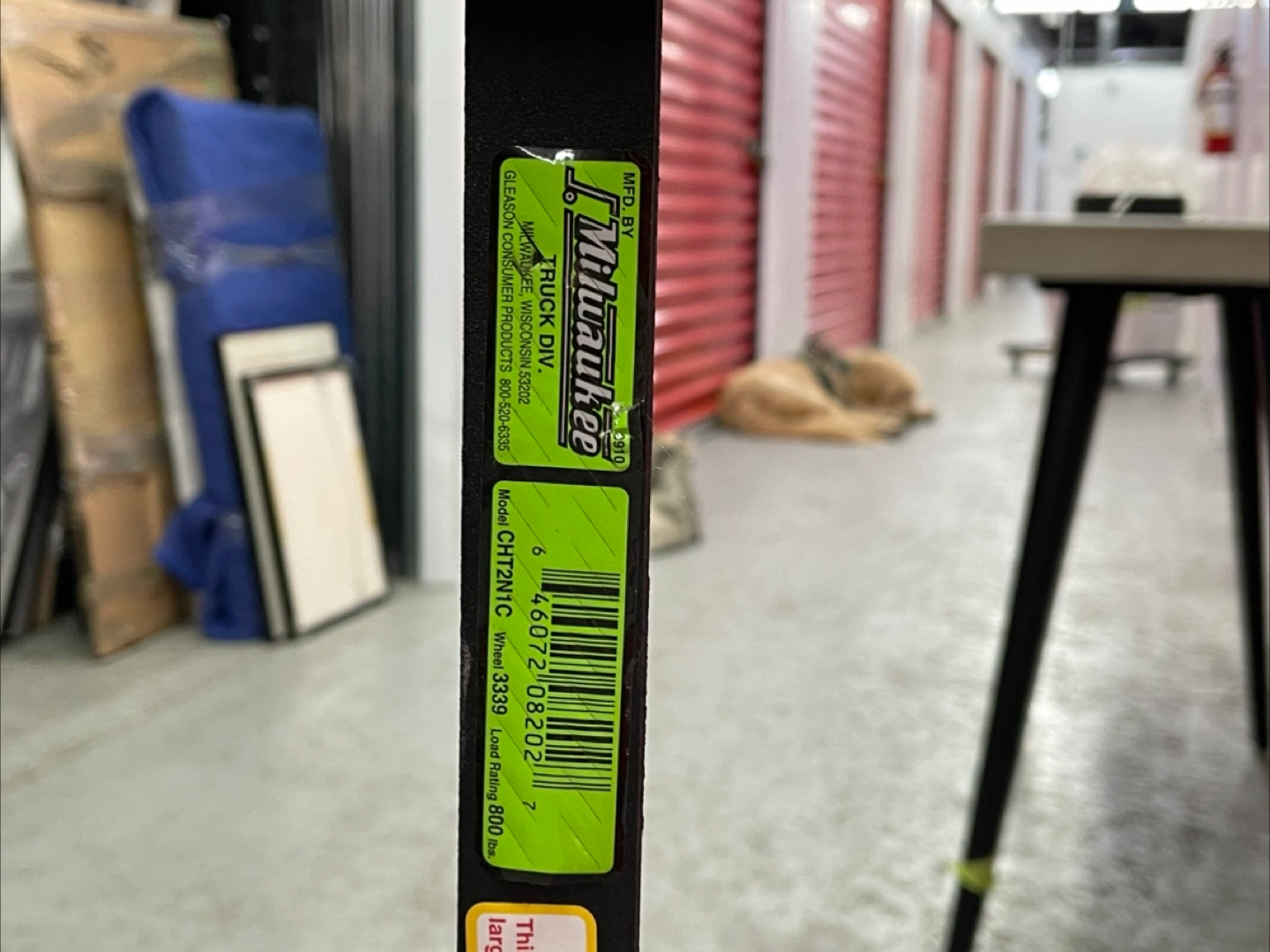 Selling a Milwaukee hand truck in good condition. It's a heavy-duty model, ready to help you move those heavy items with ease. The model number is CHT2121C. It has a load rating of 800 lbs