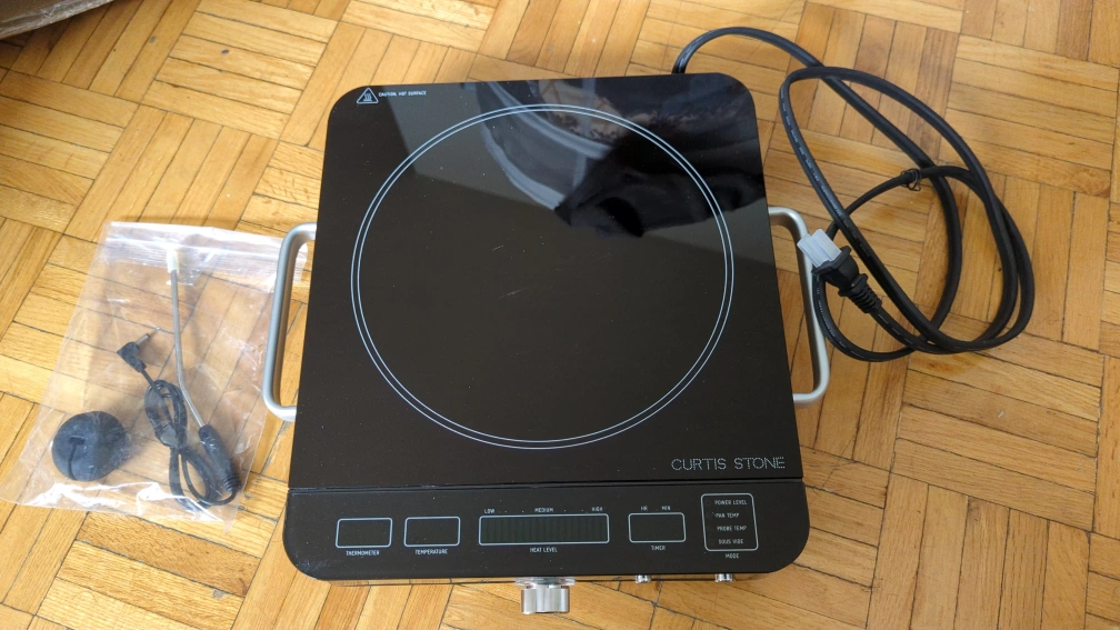 Selling a Curtis Stone induction cooktop! It's in great condition and ready for a new home. It features adjustable power levels from low to high, a thermometer, temperature control, heat level display, and a timer. Perfect for cooking up delicious meals!