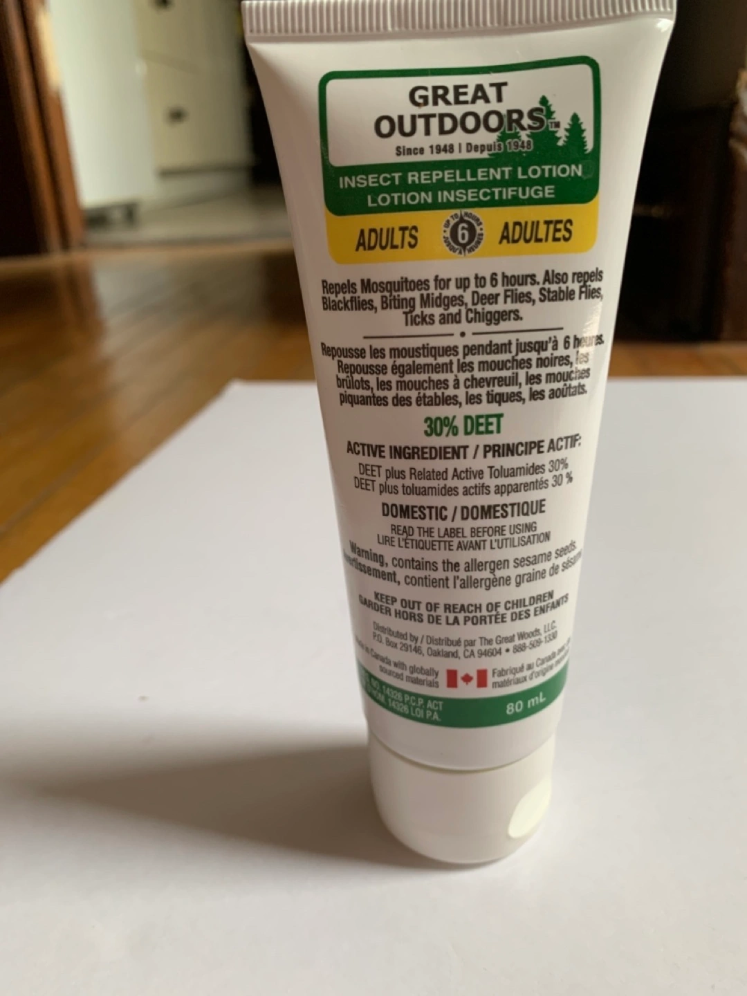 Selling a tube of Great Outdoors Insect Repellent Lotion. It repels mosquitoes for up to 6 hours, as well as blackflies, biting midges, deer flies, stable flies, ticks and chiggers. Contains 30% DEET. Perfect for outdoor adventures!