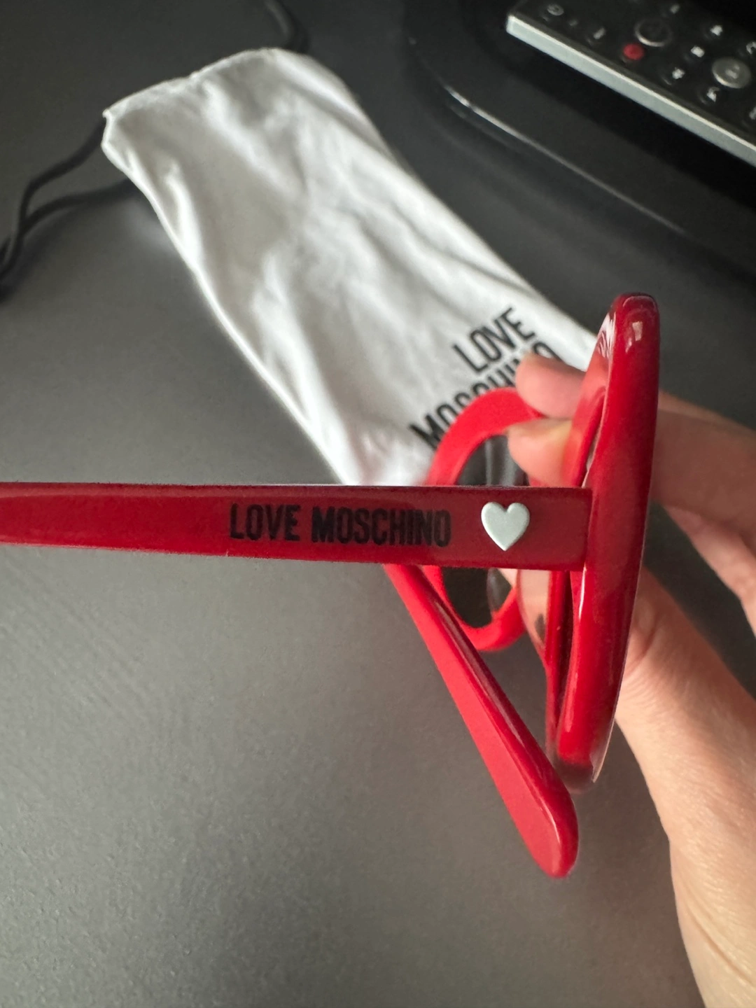 Selling a pair of new Love Moschino sunglasses. They are red and come with a white pouch. A cute heart detail is on the side Pick up only Hidden Valley NW