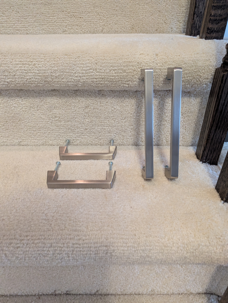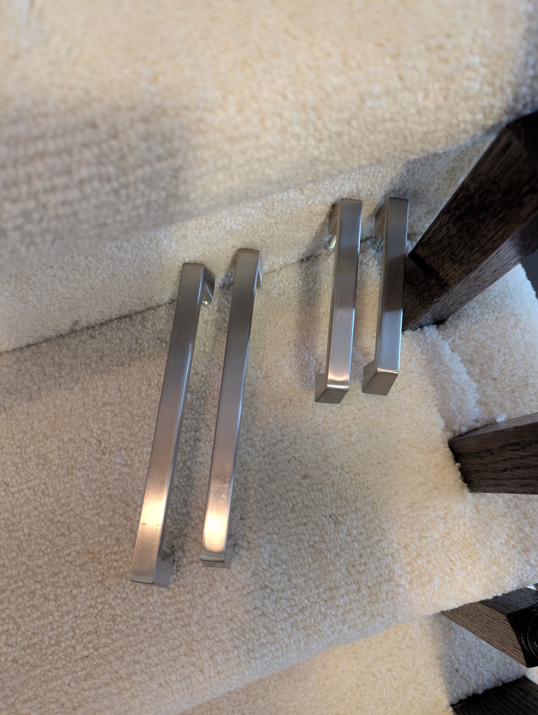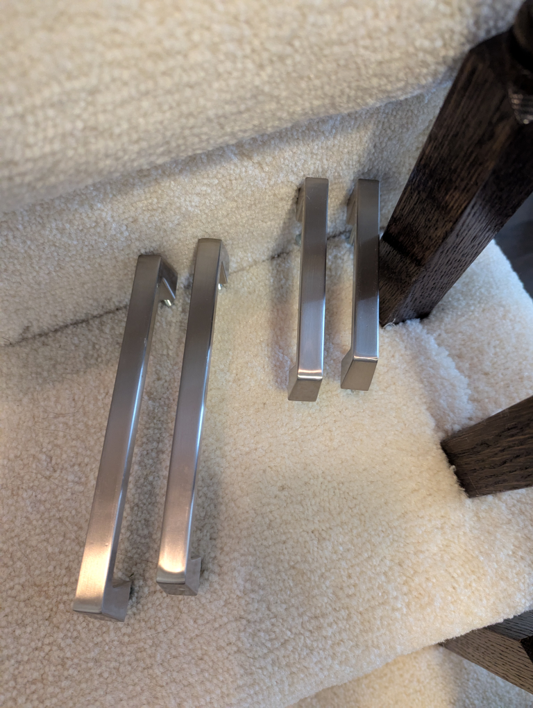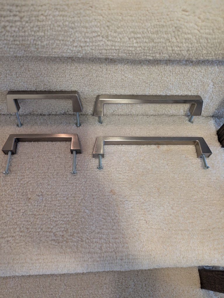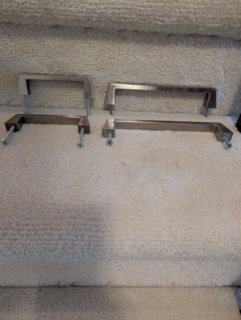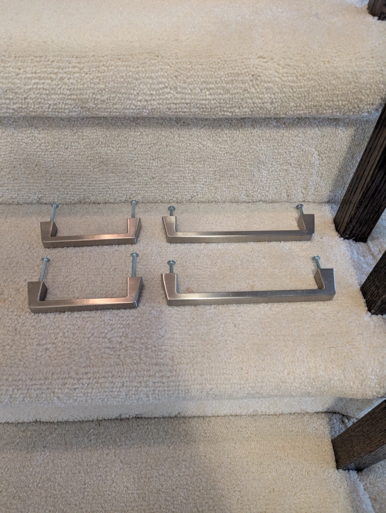 Selling a set of four brushed nickel cabinet or drawer pulls. They're in great shape and ready to give your cabinets a fresh, modern look!