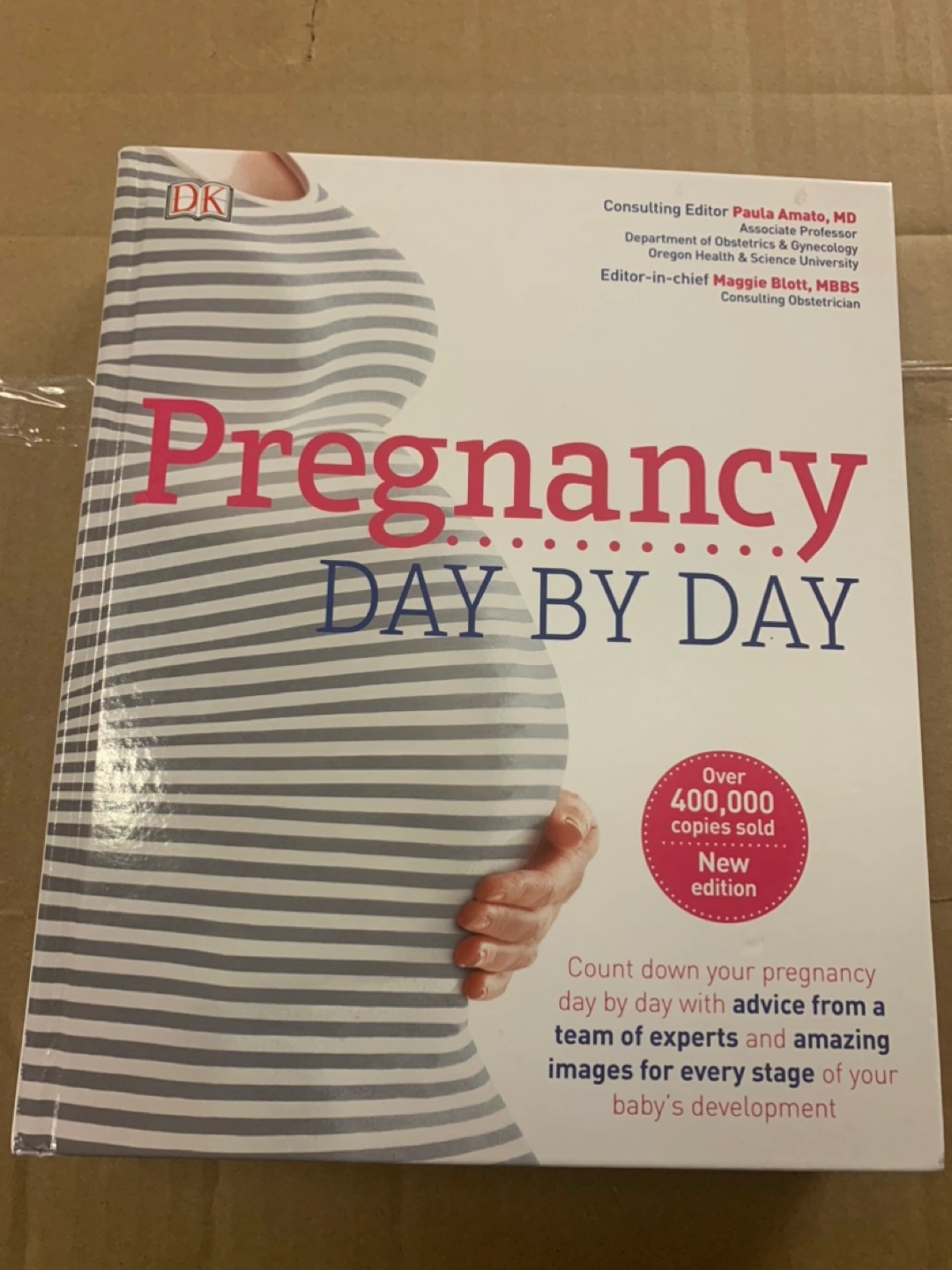 I'm selling a copy of "Pregnancy Day By Day" by DK. It's a helpful guide with advice from a team of experts and amazing images for every stage of your baby's development. It helps you count down your pregnancy day by day. It provides essential guidance on how to stay in the best health throughout your pregnancy and reveals how your unborn baby is developing inside the womb, including amazing fetal images and detailed illustrations