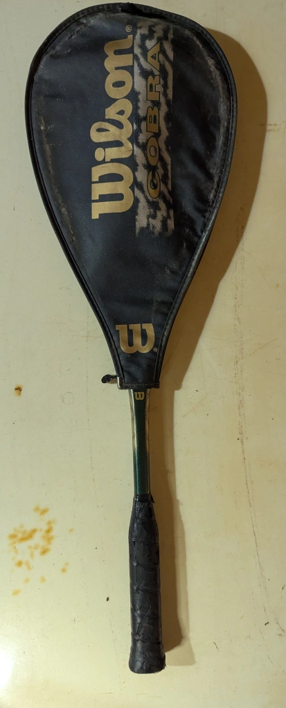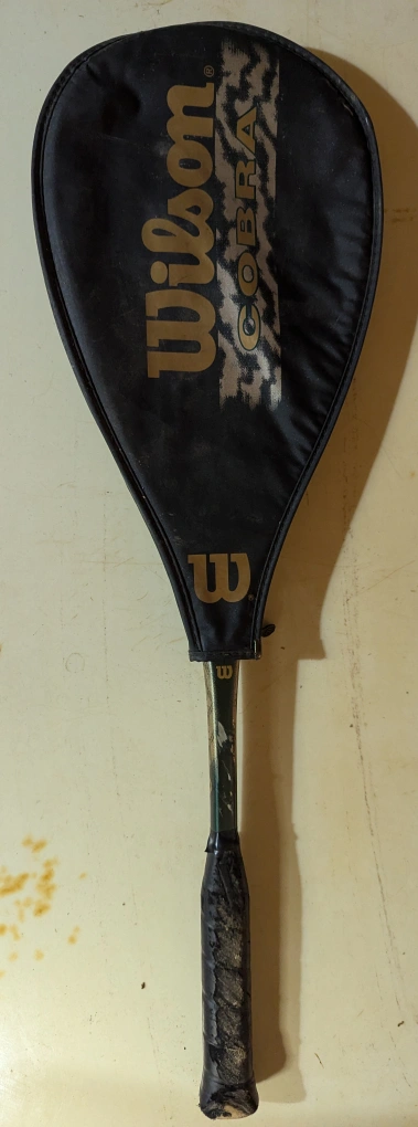 Selling a Wilson Cobra squash racquet. It comes with a cover for protection when not in use. The grip shows some wear, but the racquet itself is in good shape for playing a game of squash!