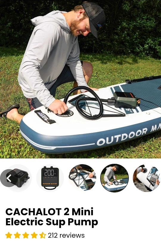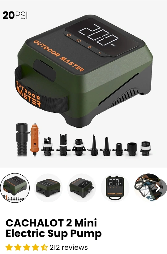 Outdoor Master CACHALOT 2 Mini Electric Sup Paddle Board Pump with Carry Case and multiple nozzles to inflate everything from floaties to camping air mattresses!